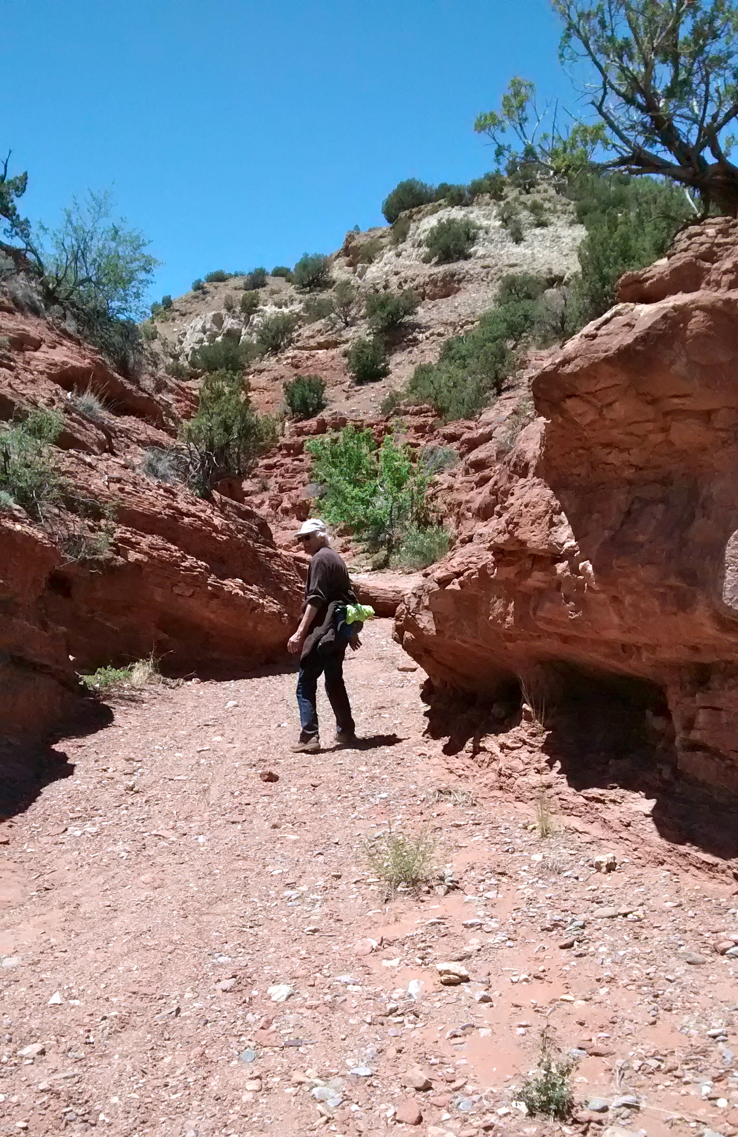 This wasn’t the first time we have hiked here. The first time was in the fall, and then we went there again as an end-of-the-year hike. One of the things we enjoy about the area is that, although there is an established trail, there are arroyos and canyons off the beaten path that you can explore easily without getting lost. Each time we have walked in some new areas, as well as on familiar parts. And since this was our first time to go there in the spring we enjoyed sighting some spring flowers along the way.