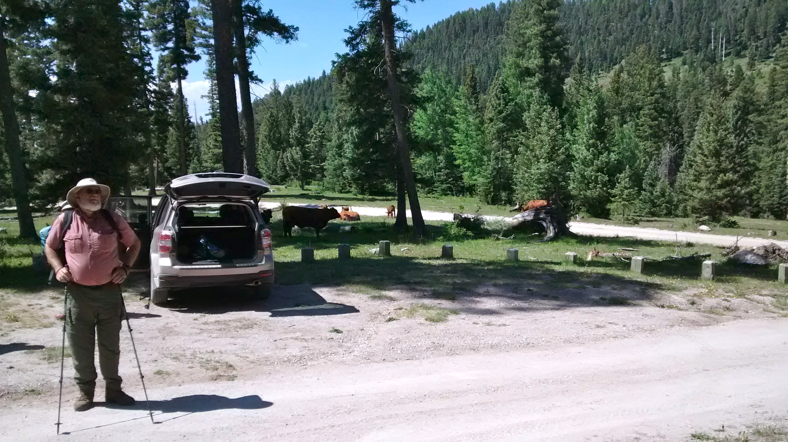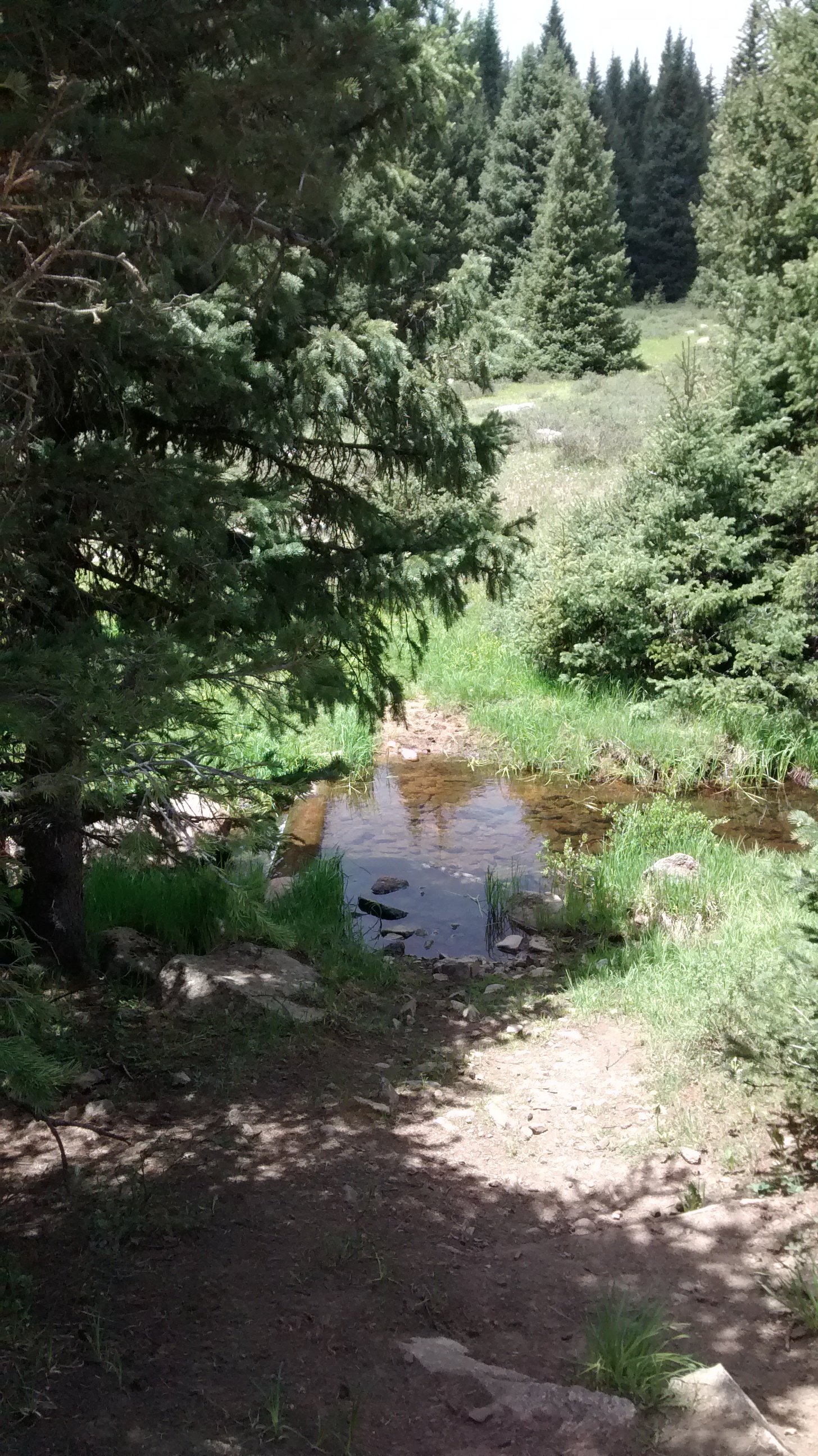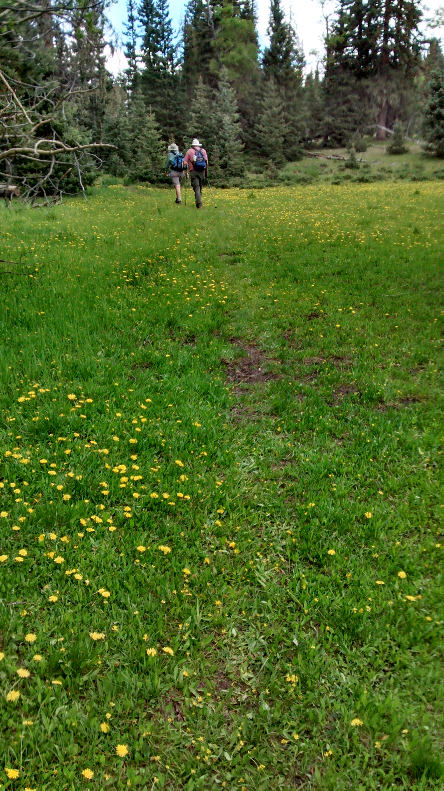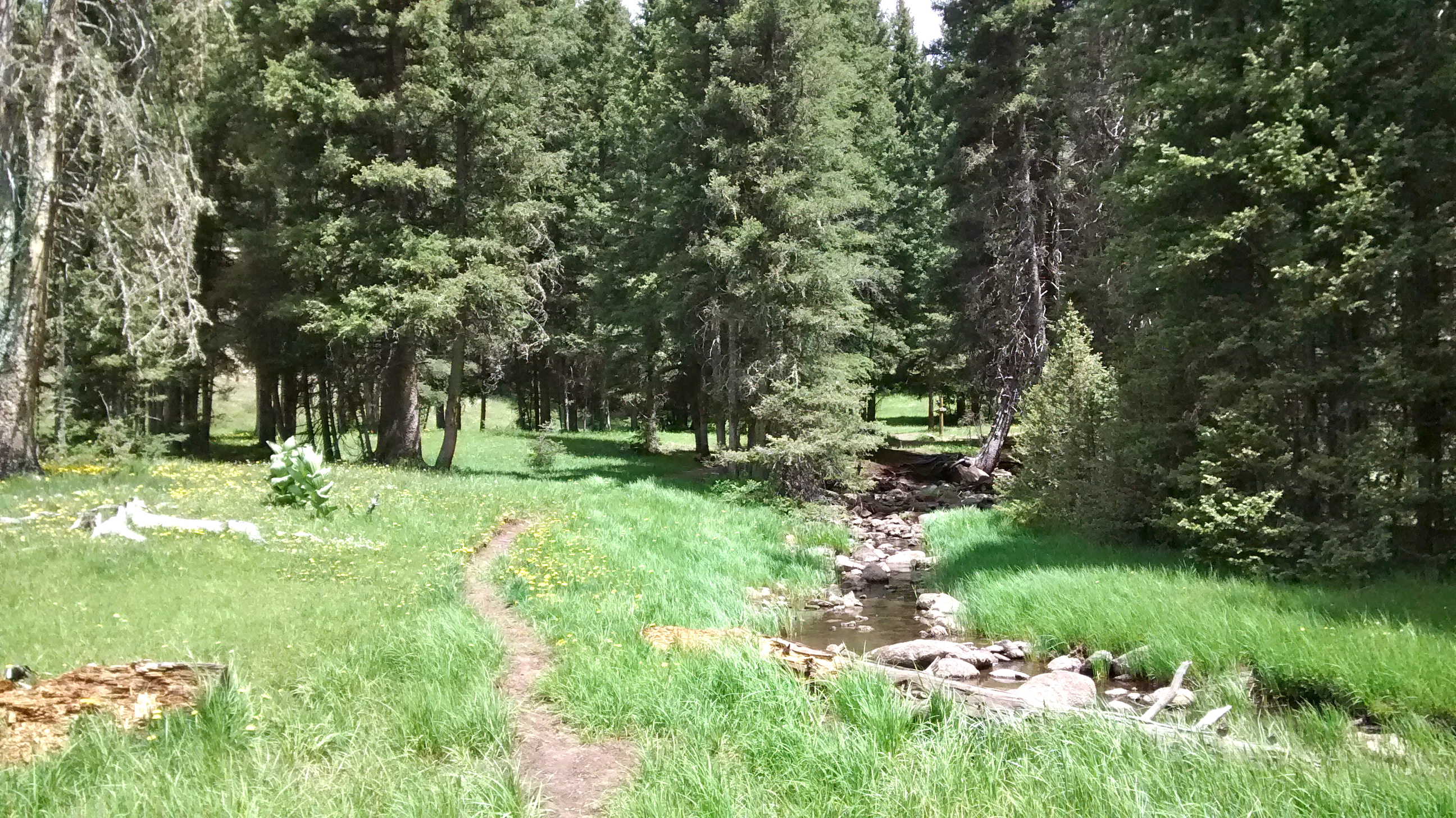 I was amazed at how green everything was in the surrounding forests and meadows. The wildflowers were out in abundance. A couple of times we could hear the sounds of a nearby elk herd, and at one point, we even spotted a couple of mothers and their calves at the edge of a meadow making their way up a wooded slope. I’m thankful that I was invited to tag along and learn about this part of the Santa Fe National Forest. Lee and I will definitely be adding this to our list of wonderful hiking opportunities in the Albuquerque area.