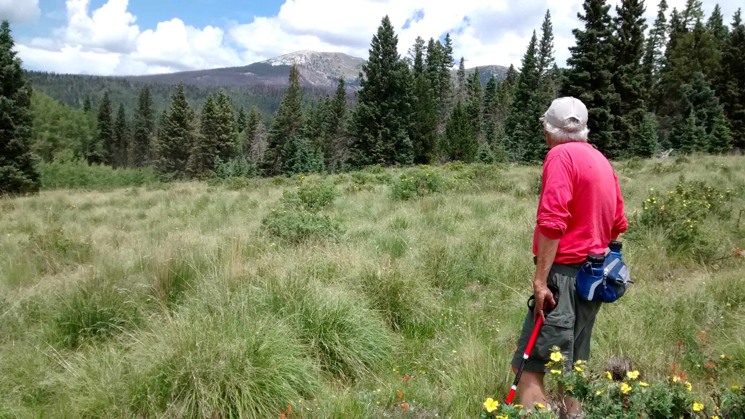The hike we chose started from Jack’s Creek campground and led us through forests and alpine meadows to a ridge with views of Pecos Baldy, a 12,500-foot peak in the Sangre de Cristos. The trail went much further than what we were wanting to do for this day hike. We hiked until lunchtime and then stopped in a meadow where we could enjoy the views as we ate our lunch. The clouds were beginning to gather and we had to get out our rain ponchos on the last mile back down. We knew we were heading back into the desert heat in Albuquerque so we didn’t mind the momentary chill as we changed out of our damp clothes and got into our car for the drive home.