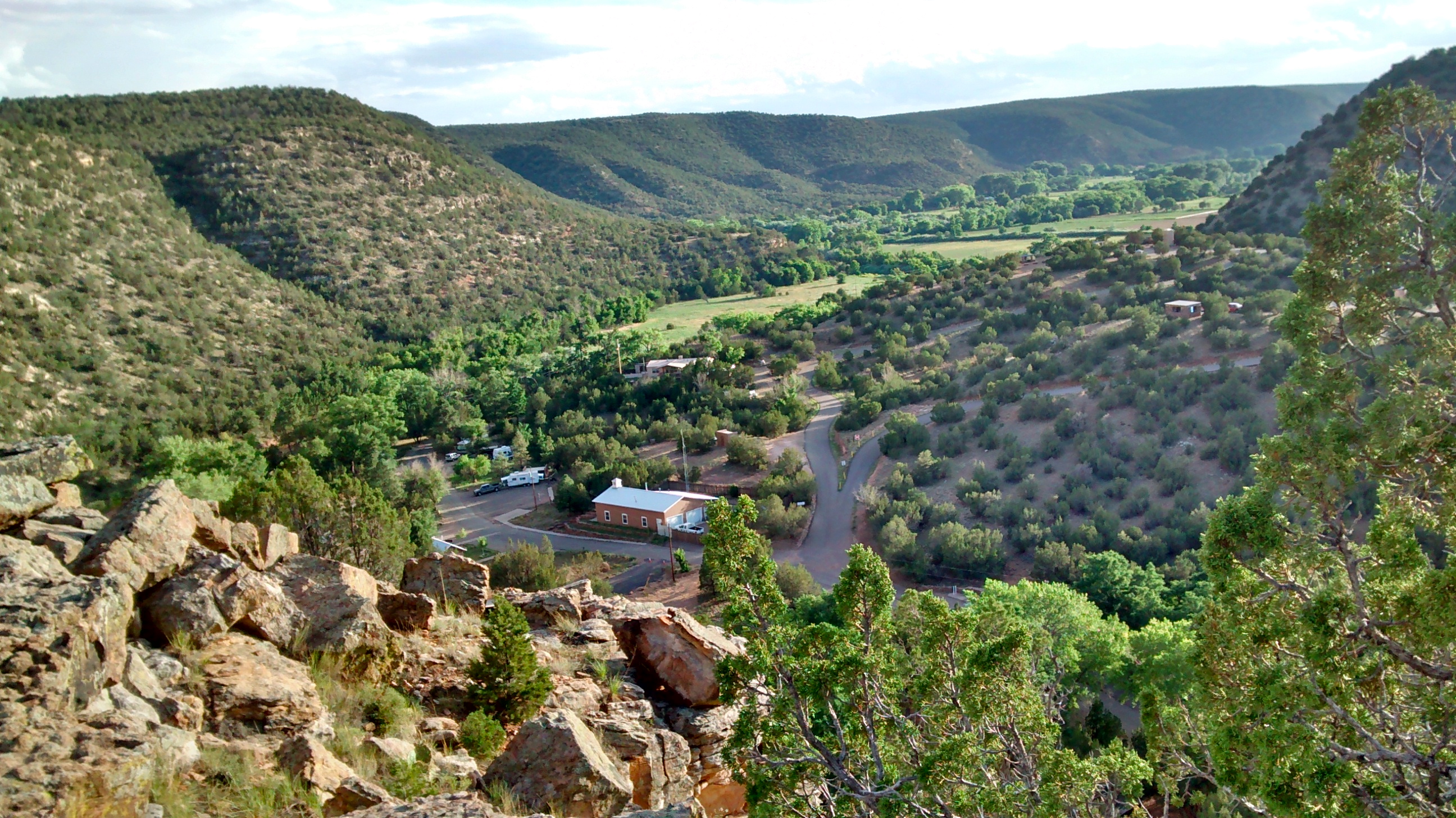 We started our 2-day “mini” vacation by camping overnight at Villanueva State Park, a small campground along a bend in the Pecos River about 60 miles downstream from its source high in the Sangre de Cristo Mountains. My years of living in southern New Mexico had left me with the idea that the Pecos River, after it leaves the mountainous country of northern New Mexico, is flat and boring. I had never been in this section of the state and was pleasantly surprised to find such an interesting area hidden between high sandstone bluffs along the river.