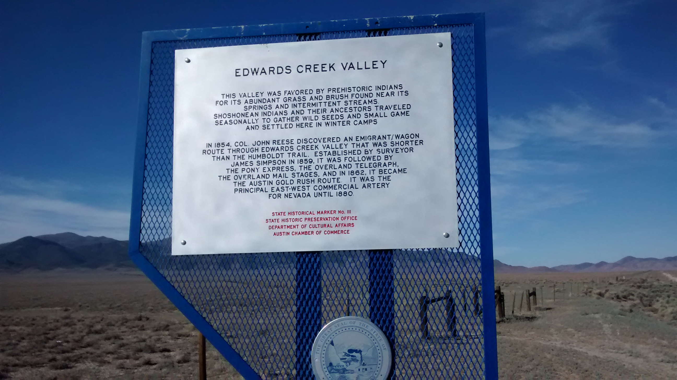 The only other time I can remember driving through Nevada was on the western side of the state where it is mostly flat, barren stretches of desert. The miles of highway driving east to west across the middle of Nevada were very different from what I had expected. There are multiple mountain ranges running north and south in this part of the state. US 50 leads you up one mountain range, through a summit or pass at the top, and then back down to the desert where you head towards the next mountain range across the desert in the distance to repeat the same pattern. That seemed to take hours and hours of driving both before and after our overnight stay in Austin. But they were enjoyable hours and we had many opportunities to break the monotony by stopping at scenic overlooks or historical markers to learn more about this fascinating area.