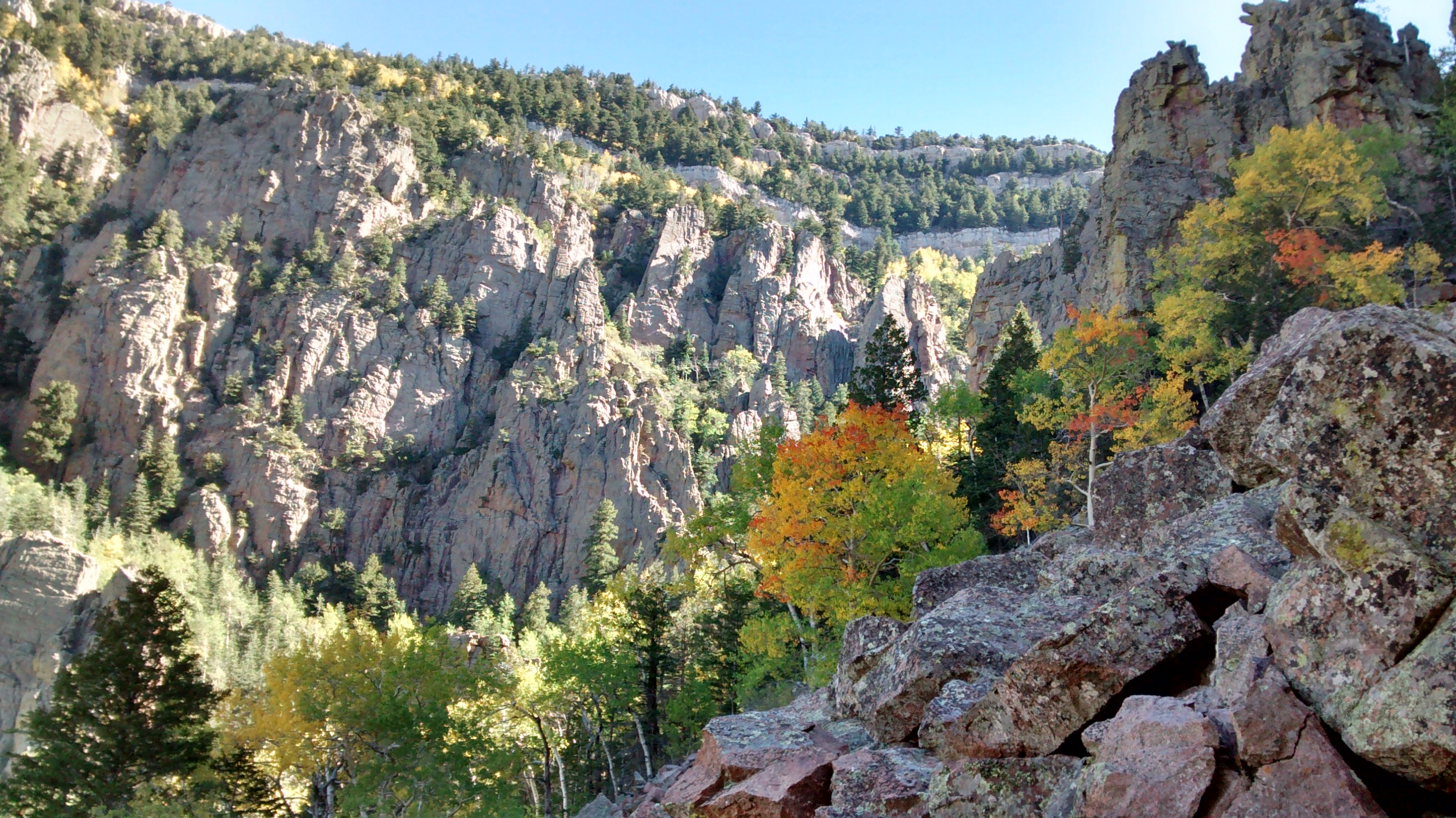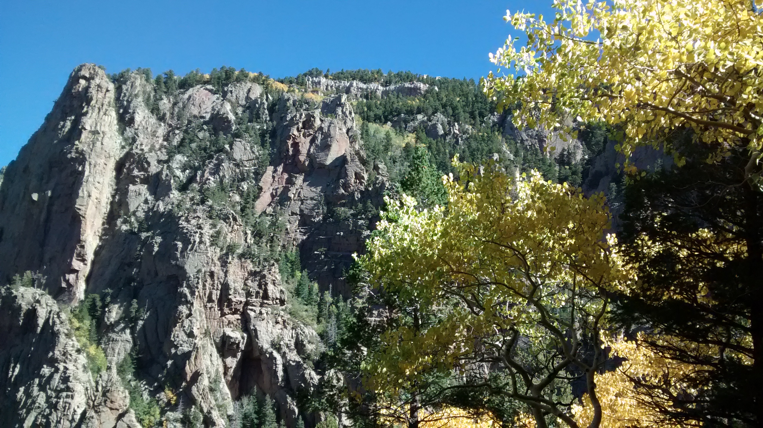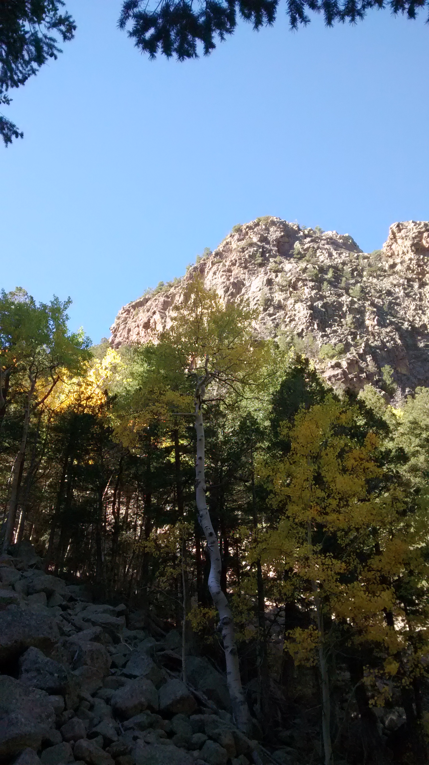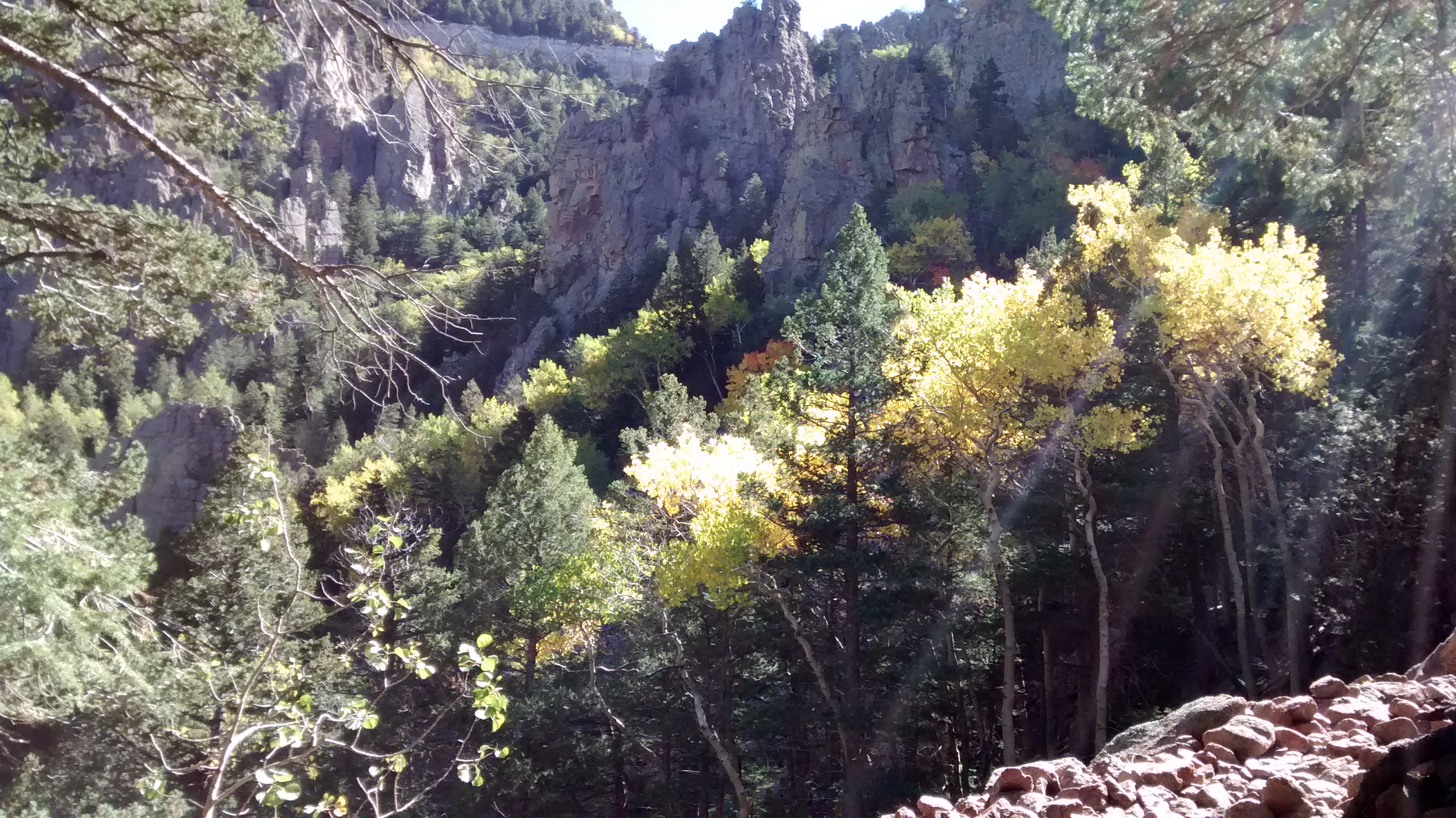 Today being Tuesday, and a beautiful fall day, perfect for hiking, I felt I just had to get out in the Sandias somewhere. Lee had plans for the afternoon and needed the car so he couldn’t go with me. But he could drop me off at a trailhead in the morning and pick me up after his appointment. I thought it would be fun to have him drop me off at the La Luz trailhead, hike the 7 miles up to the crest and then ride the tram back down. Then Lee would be able to pick me up at the tram parking lot at the bottom.