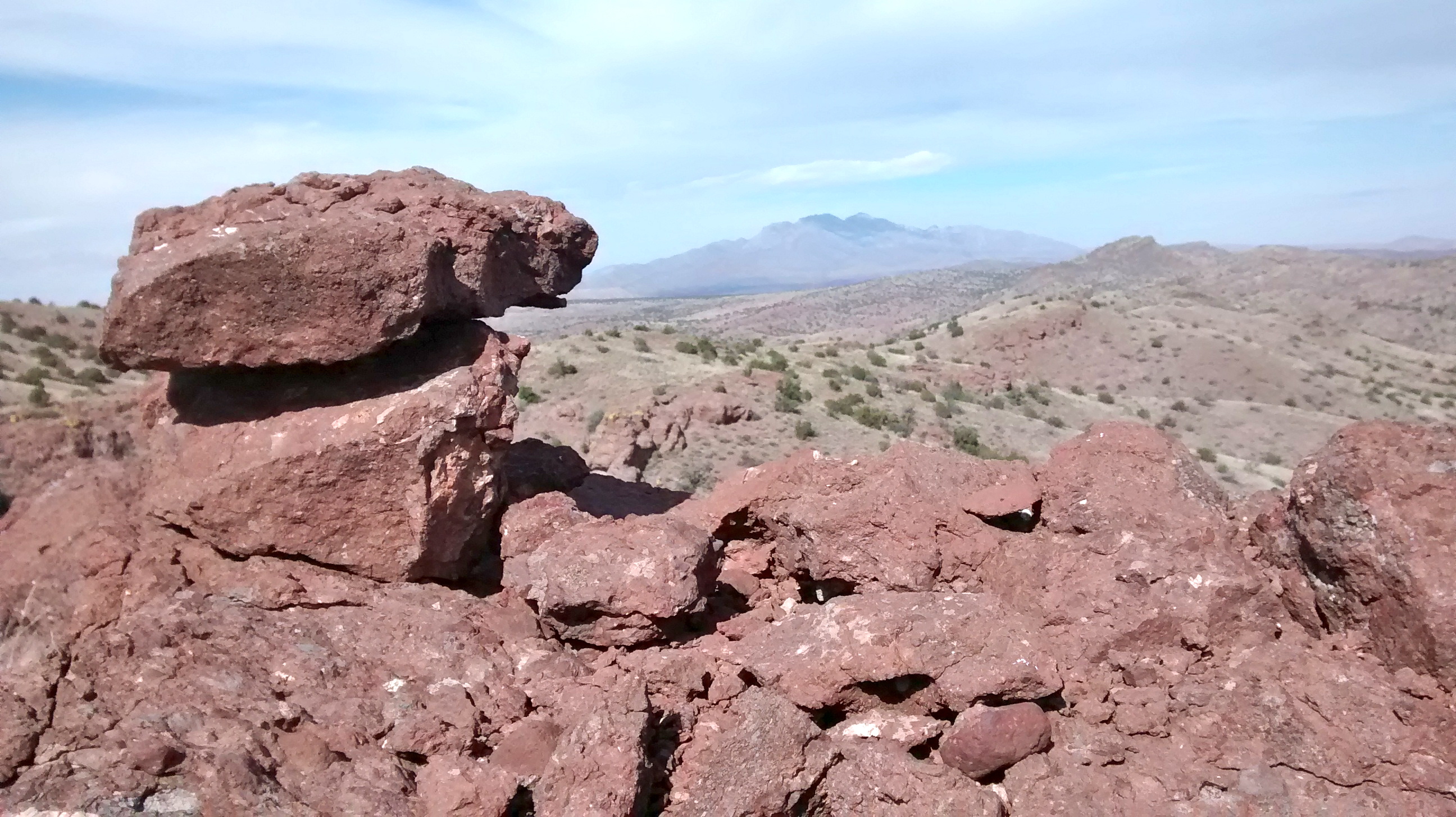 After weeks of exceptionally warm weather, today started off quite chilly with overcast skies. But we bundled up and weren’t on the trail too long before we found ourselves warming up enough to take off some extra layers. We were also glad that Sue was driving her 4-wheel drive vehicle because of the last stretch over rough, dirt road that leads through the lower part of the canyon. Most of the interesting rock formations and hoodoos were along the road leading into the canyon. When the canyon road ends there is a rock face that you climb up and over to access the upper part of the canyon to start the hike.