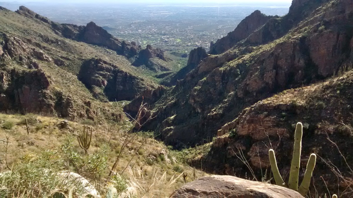 Both of our hikes were in the Santa Catalina Mountains that sit to the northeast of Tucson, similar to our Sandia Mountains east of Albuquerque. The Catalinas are not quite as high as the Sandias but, like the Sandias, there are numerous trails to choose from that provide a wilderness getaway with awe-inspiring views of the city below and the mountains and desert in the distance.