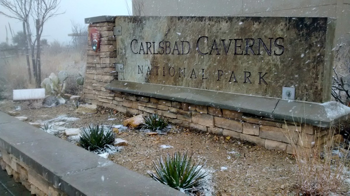 Our enjoyment of the warm weather was short-lived. A storm blew in overnight and it was cold and rainy when we woke up the next morning. We had planned to explore the Slaughter Canyon Trail in the Guadalupe Mountains west of the caverns. By the time that we arrived in Whites’ City the rain had turned to snow. It didn’t look to be a promising day for a hike in the mountains so we decided to turn our hike into an underground exploration and join the hordes of tourists who come to Carlsbad just to see the caverns. The park brochure said that the temperatures in the cave stay at a constant 57 degrees. That sounded a whole lot better than freezing rain and snow.