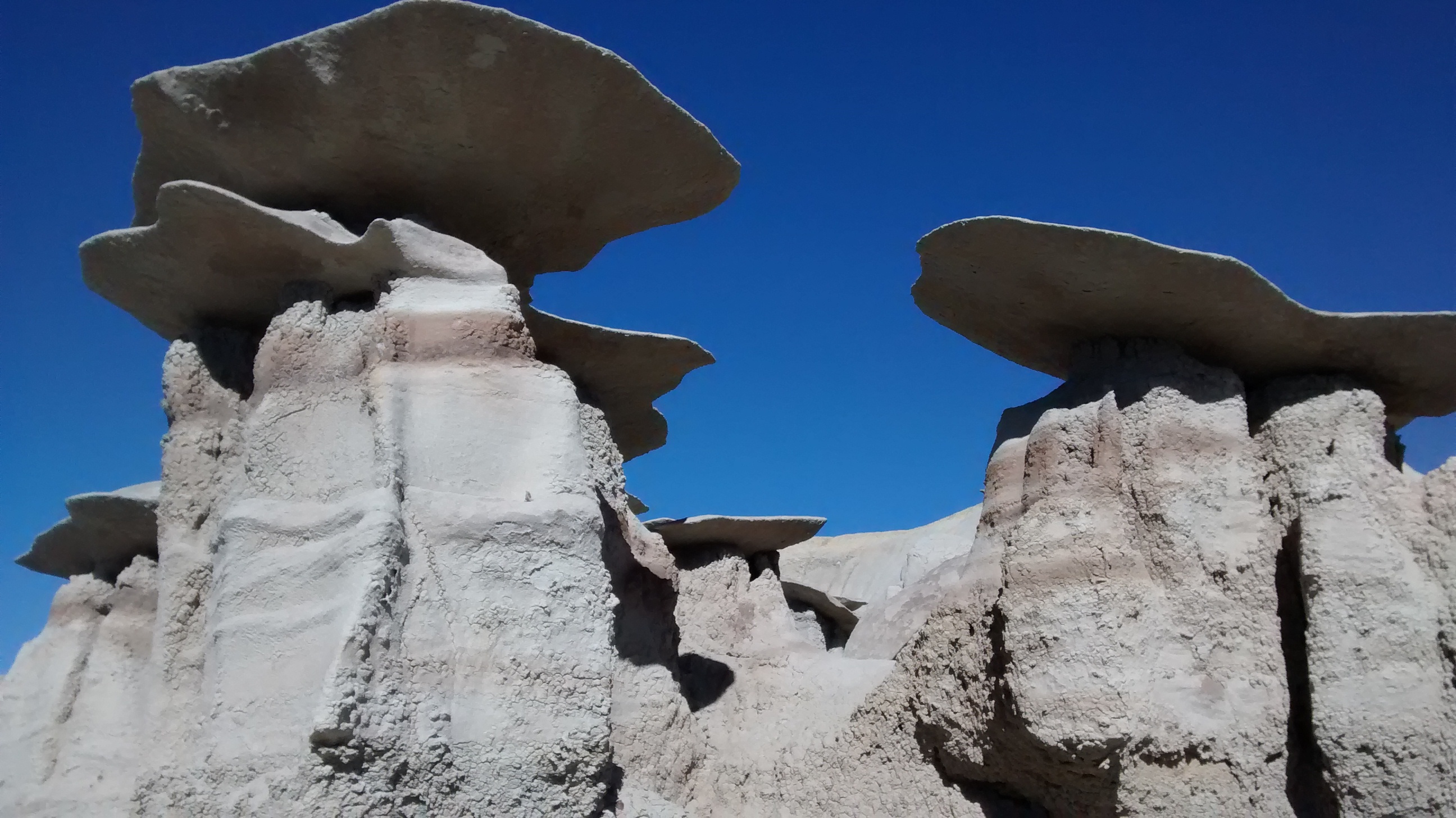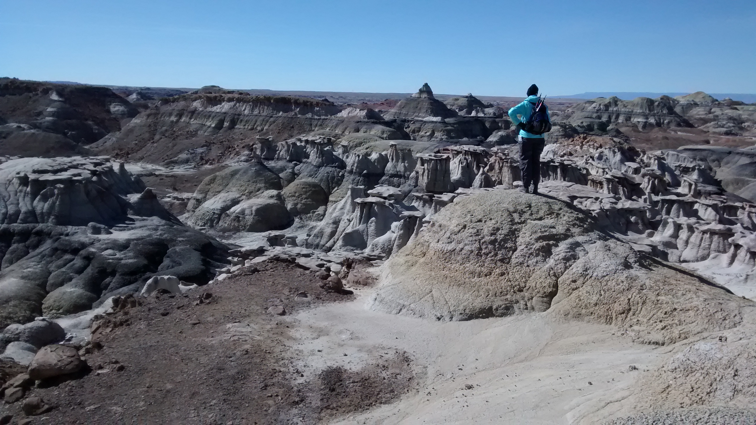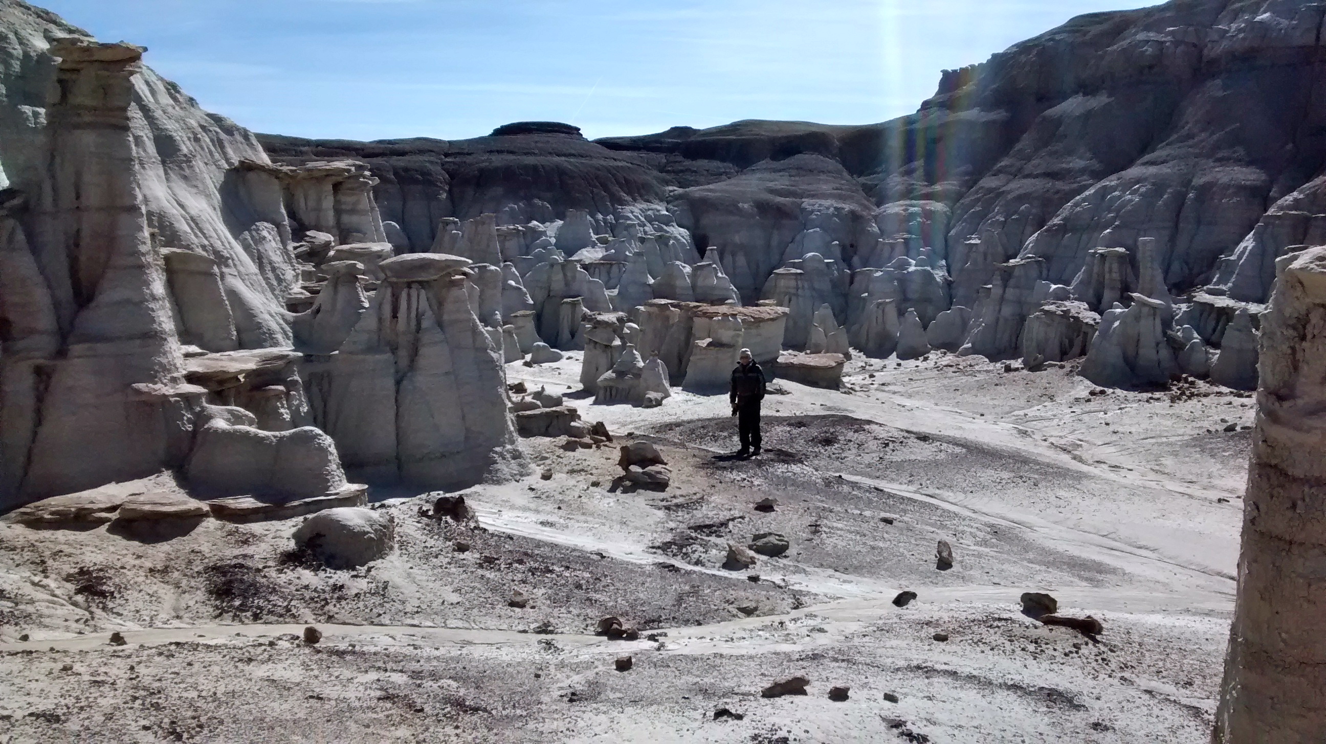 We finally made a trip to northwestern New Mexico to explore the De-Na-Zin and Bisti Wilderness Areas. It’s an area of badlands that I’d been wanting to see, but it’s a bit too far from Albuquerque for a day hike. By spending the night in Farmington, we had plenty of time to hike through De-Na-Zin the first day and then Bisti the second day.