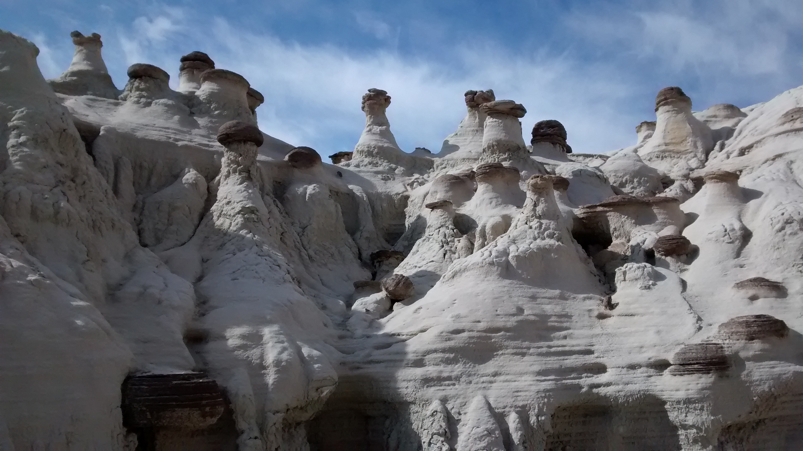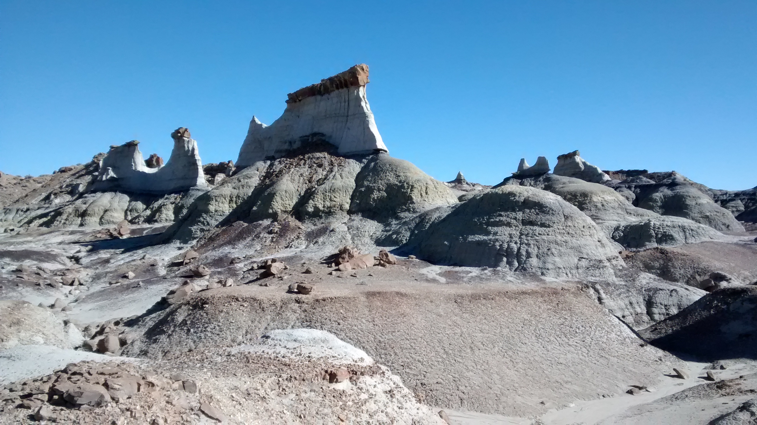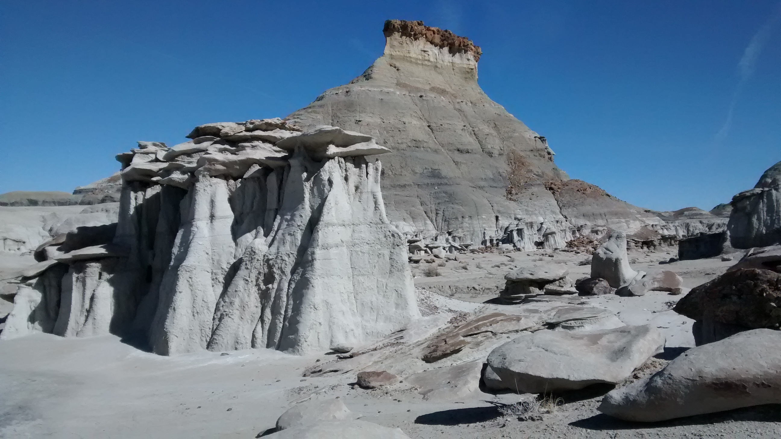 We finally made a trip to northwestern New Mexico to explore the De-Na-Zin and Bisti Wilderness Areas. It’s an area of badlands that I’d been wanting to see, but it’s a bit too far from Albuquerque for a day hike. By spending the night in Farmington, we had plenty of time to hike through De-Na-Zin the first day and then Bisti the second day.