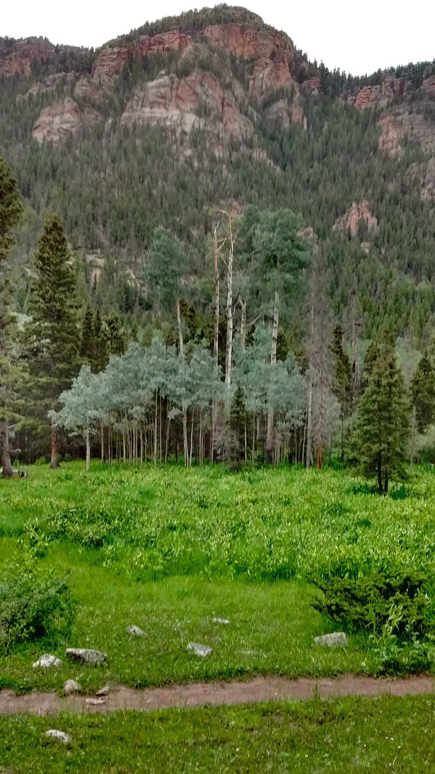 Both days of hiking provided us with opportunities for viewing and photographing wildflowers, some of which were old favorites, others that we have yet to identify. Columbines are some of my favorite wildflowers. The Red Columbine is what I’m familiar with, but in the Pecos I got my first chance to see the Blue or Colorado Columbine. They were everywhere on the West Fork trail and I took countless photos because they were so beautiful. Of course, with only a phone camera I just couldn’t seem to get a photo that really captured the beauty. And that went for the scenery, as well. I suppose, in the future, another way to enhance the hiking experience might be to get more serious about photography. For now, I’ll use the photos I do have to enhance my memory of this wonderful experience until the next time I’m able to be out there enjoying God’s creation in person.