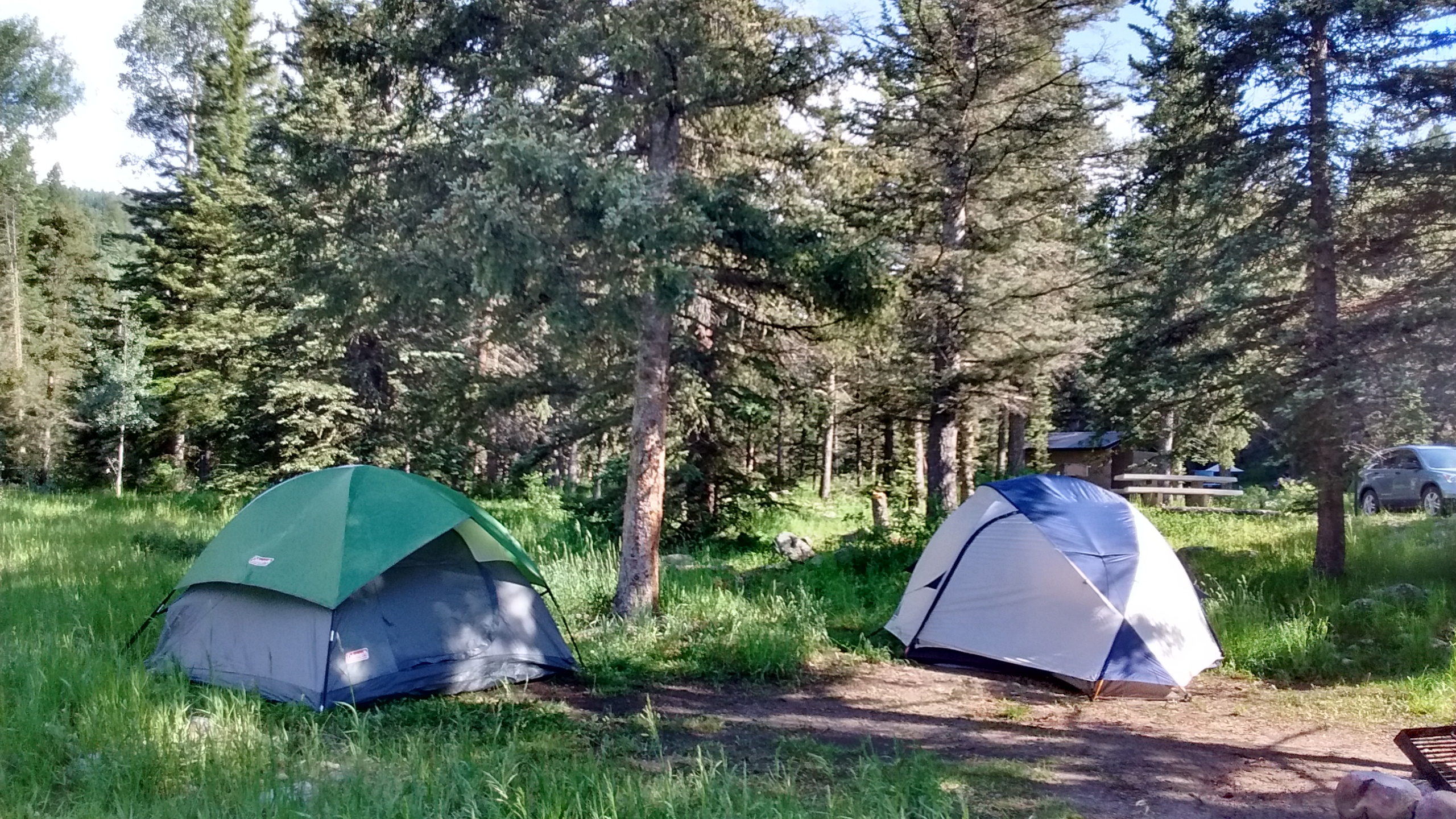 At the suggestion of our friends, Ken and Sue, who had been in the area before, we camped Monday and Tuesday at the Santa Barbara campground in the Carson National Forest, just north of the Pecos Wilderness. We shared a campsite with them both nights and they helped us plan a 10-mile hike Tuesday and another 10-mile hike Wednesday before we headed back to Albuquerque. They are experienced backpackers and their plan Wednesday was to head further into the wilderness for 3 days of backpacking.