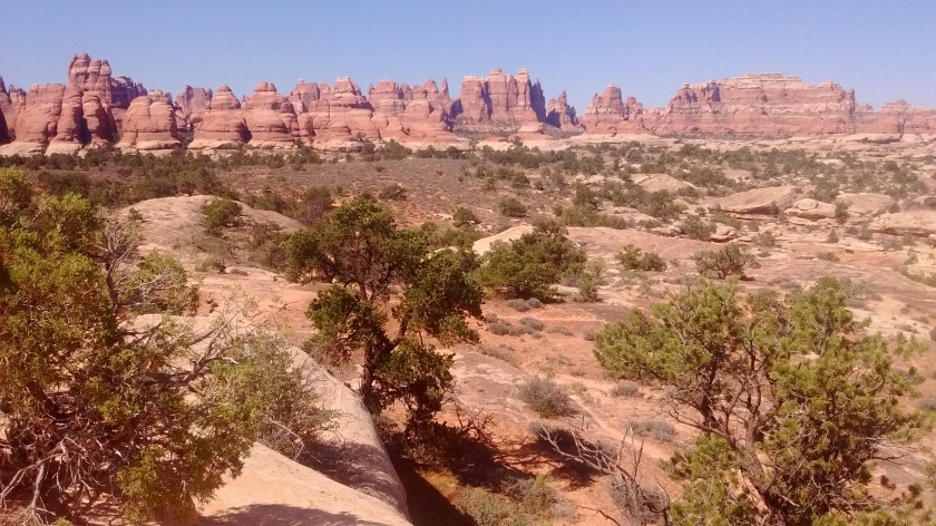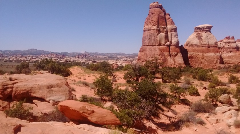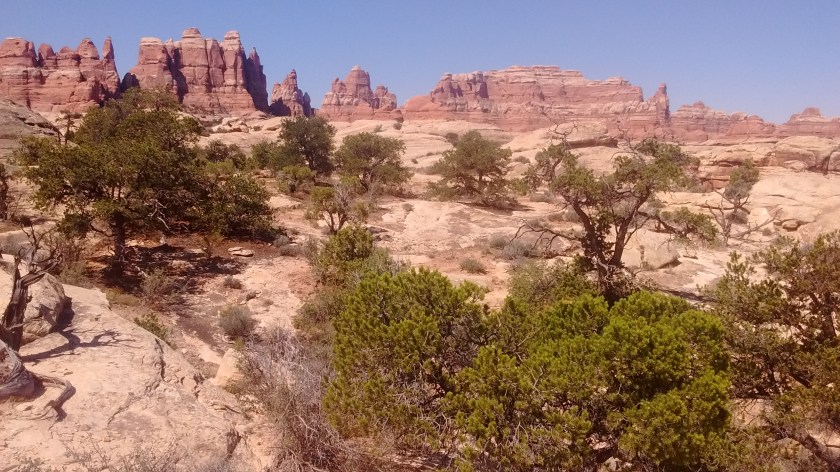 Really, though, who cares about news when there are hiking trails waiting to be explored. This trip included just a one-day stop at Canyonlands so we couldn’t do a long hike. The ranger at the Needles Visitor Center suggested the Elephant Hill Trailhead where we could hike 3 miles to get good views of the Needles and then 3 miles back out.