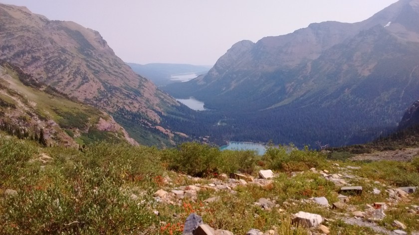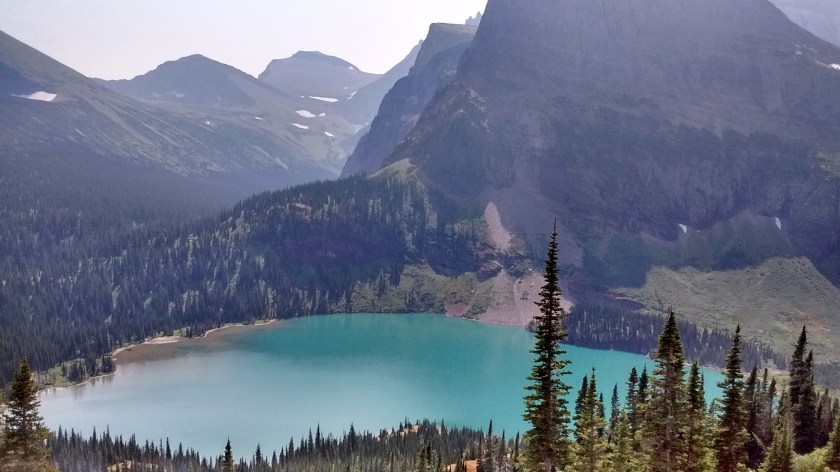 The first day we were on the west side of the park and the smoke-filled air that had been obscuring our views for days in Idaho and Montana refused to move out of our way. We hiked to a lookout tower and half of that hike was disappointing because it was through a forested area that had been burned over. In the afternoon we did a nice hike to Avalanche Lake.