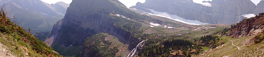 But today dawned bright and clear, just perfect for an 11-mile hike to view Grinnell Glacier. I couldn’t stop taking photos. It was so awesome compared to what we saw the first two days. So I’m not bothering to post any of the other pictures here so I can leave more room for the Grinnell Glacier hike–one to remember.
