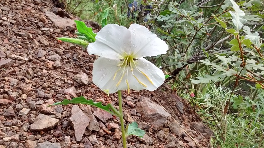 We got to camp Wednesday just in time to sit in our shelter and watch the rainstorm, accompanied with a good amount of hail. The rain stopped in time to fix dinner and take an evening walk. But then at bedtime it started to rain again. As we listened to the rain throughout the night we didn’t have to worry about getting wet. But we did worry about how wet the road was getting. There were some bad spots we remembered that could easily get impassable without 4-wheel drive. As dawn approached the rain had quit but it looked like it might start up again at any time.