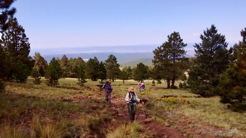When I recently saw the Mt. Taylor hike listed on the schedule for one of the Albuquerque senior centers, my desire to do the hike won out over my dislike of traveling and hiking with large groups. There were 13 of us who did the hike but it was a good group and a good experience for me to be a bit more sociable. Lee really appreciated the group experience and the slower pace. He said that when it was just the two of us I kept rushing ahead and he got tired trying to keep up with me. I think that he’s a stronger hiker now than when we first did it and that’s why he found it less tiring. But, whatever the reason, it was an enjoyable day for all, well worth the 2000-foot elevation gain to get to the top.