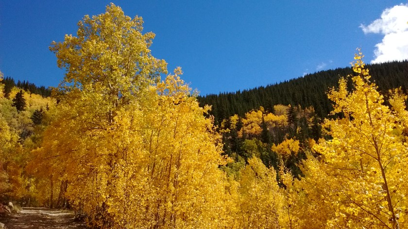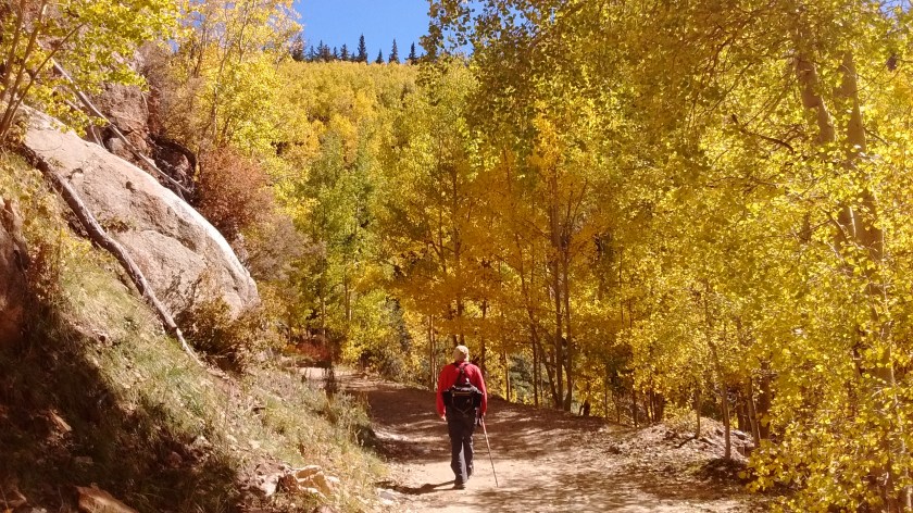 Besides being a special occasion, an annual event like a birthday or anniversary is a good time to reflect on all that has happened in our lives in the previous 12 months. I was doing that kind of reflection today as we hiked in the Santa Fe National Forest through an area known for its spectacular fall colors. It was exactly one year ago when we did the very same hike. One could say that we are stuck in a rut doing the same old things. But nothing could be further from the truth. Such beauty is fresh each time you see it. Changes that happen in our lives can be troubling but when you think of them as a change of seasons its comforting to know that the cycle of nature continues and sunny days will return.