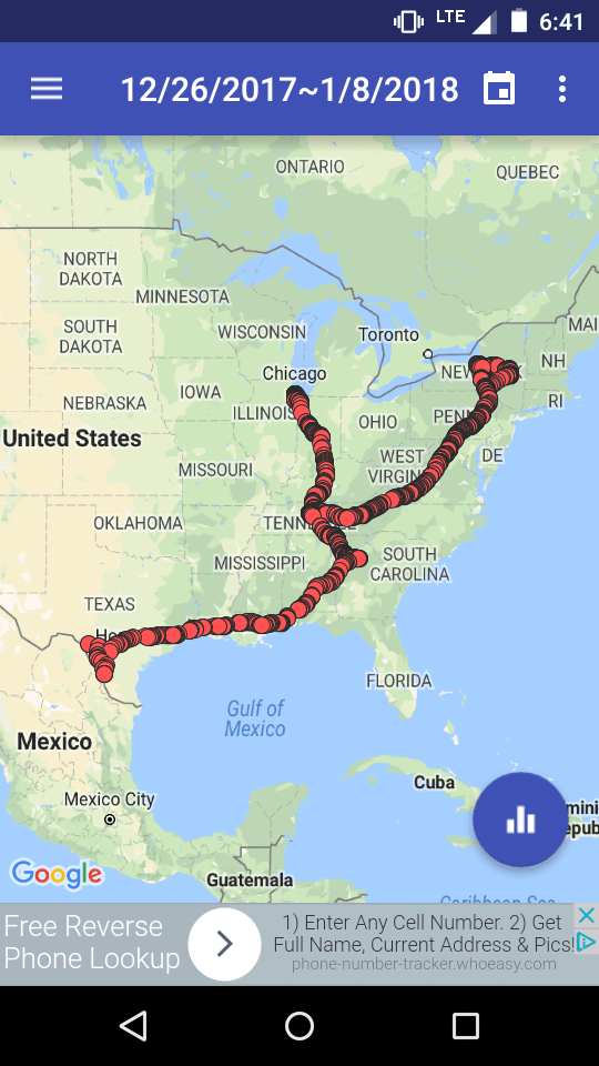 My trucking adventure has come to an end, and although it will be nice to get a shower and regular bed tonight, it was very sad to see the Celadon truck leaving the truck stop in Houston this morning and I wasn’t riding shotgun anymore. Starting December 26 from Brackettville, TX, going up to Georgia, Tennessee, and New York, then back down to Tennessee and Indiana, then up to Chicago and back down to Indiana and Georgia, my ride ended in Houston, TX. Mike continued on with the load he needs to deliver in Laredo this afternoon. It made sense for me to stop here because it is easier to get back to Albuquerque from Houston than it would have been from Laredo.