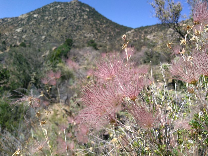 I can’t imagine a better way to celebrate the first day of autumn than to hike up one of the many trails in the Sandia Mountains. It will be a couple of weeks before we see the golden colors of the aspen and cottonwood trees. But the timing today was perfect for enjoying the beautiful displays of the feathery pink seed heads on the Apache plume shrubs along the trail.