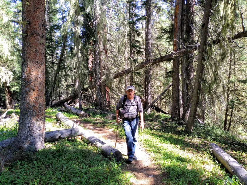 Our home for the night was cozy, actually a bit too warm until the sun went down. At 10,000 foot elevation it’s amazing how quickly the temperature drops at night. We’d been sweating that afternoon but by dark were ready for the warmth of our sleeping bags. Overnight temperatures were in the 40’s so by breakfast time we had put on all our extra layers of clothing and were hunting for that first spot of sunlight coming through the trees to warm us up.