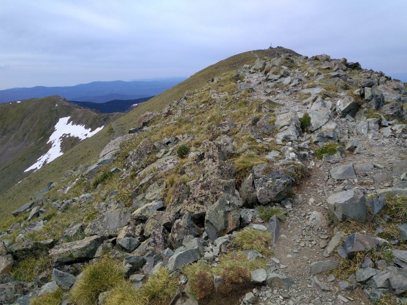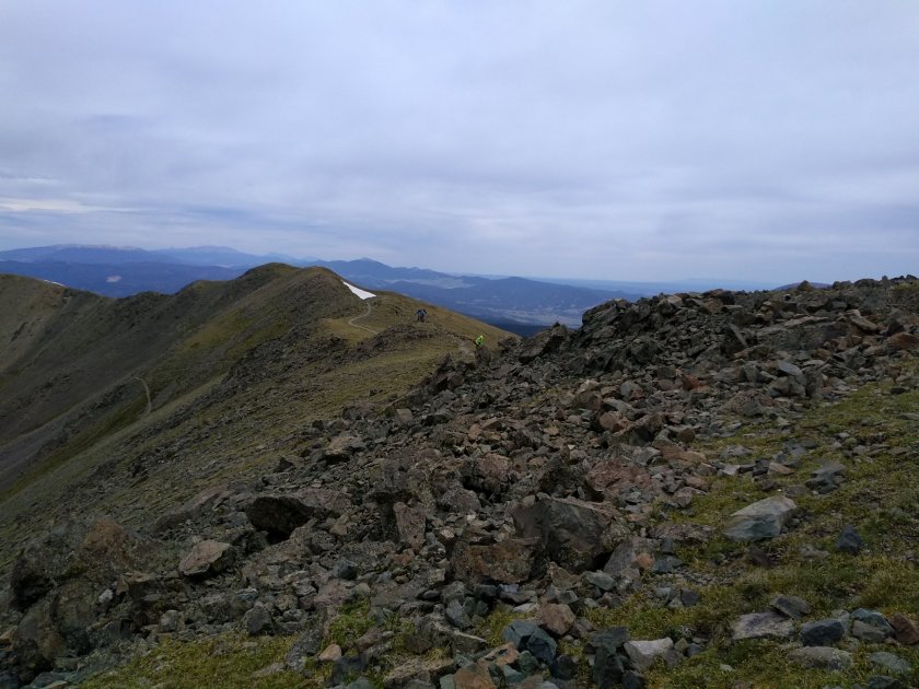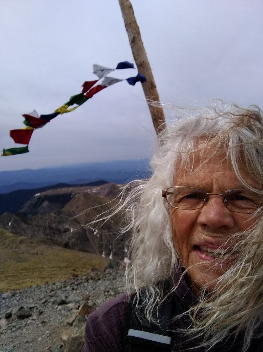 Well, it was some work but now we can congratulate ourselves that we bagged that rugged, imposing peak. It’s 4 miles to the top, starting at 10,000 feet elevation, for a 3000+ elevation gain in those four miles. We had been warned about the winds and cold temperatures up there and came prepared. Even so, it was almost impossible to stand more than a few minutes on the summit point. Views from that elevation are astounding but, unfortunately, today’s skies were overcast during the time we were up there and our summit photos didn’t turn out so well. I was just thankful that a rainstorm didn’t develop, which is a frequent occurrence in the summer.