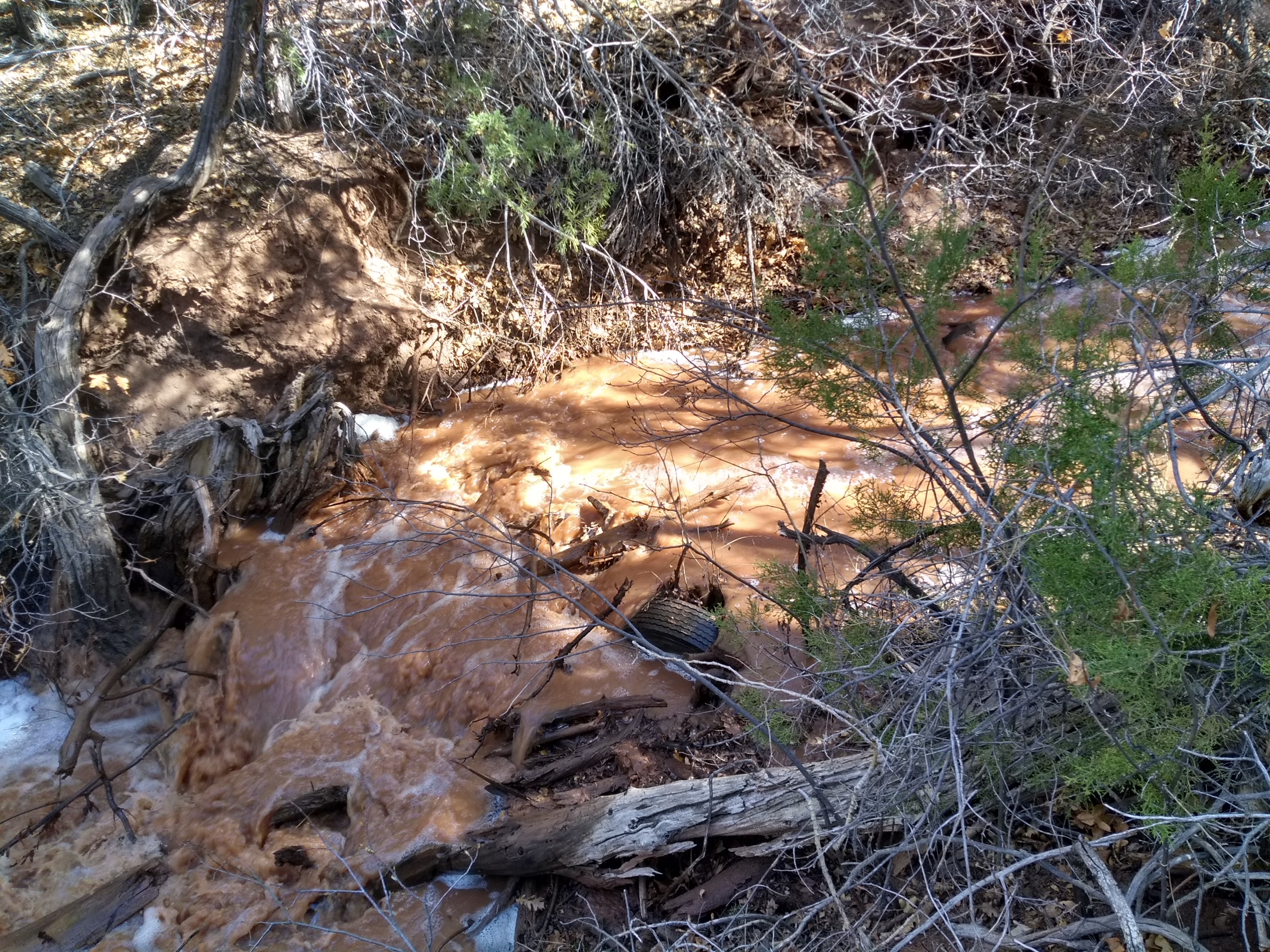 After walking a short distance up the road the reason for the water became evident. There was an irrigation ditch with a massive flow of water coming with such volume that some of it was overflowing into the road. I had noticed on our way into Cuba that a number of the fields along the highway were flooded with irrigation water. San Gregorio Reservoir is located up in the mountains, not too far from where we planned to get on the CDT, and Lee guessed that the water was being released from the reservoir for downstream irrigation to the farms around Cuba.