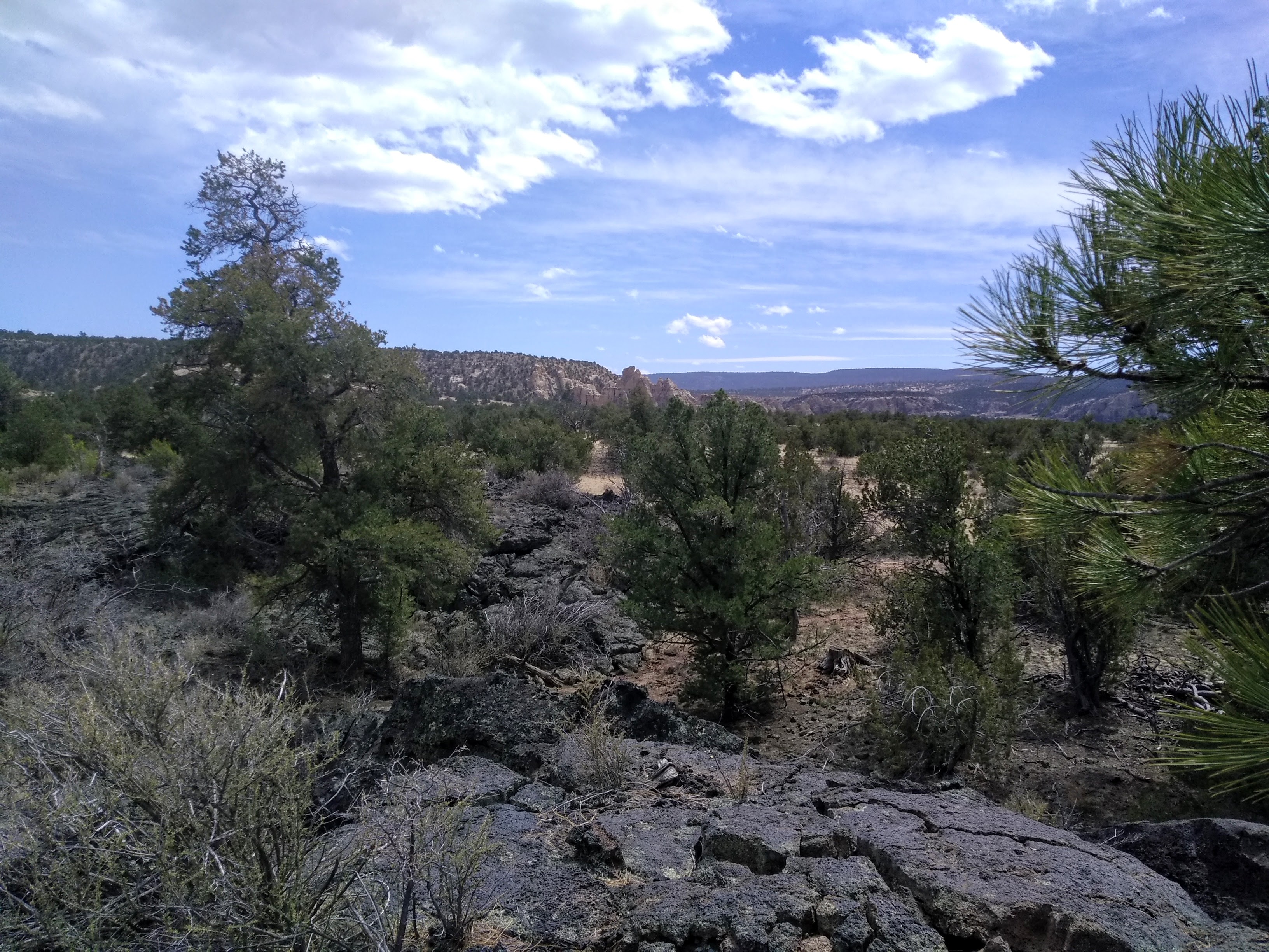 As I learned on the website for the National Monument this trail has been around for centuries, used by native people to connect the two pueblo lands on either side of the Malpais. A lot of hands and backbreaking work has probably gone into making all the piles of rock that guided our way. That bit of history on the website also provided an explanation for my confusion over the name of the trail. When you start from Highway 117 it is the Acoma-Zuni Trail because the Acoma pueblo is on that side of the Malpais. You will be crossing over to the Zuni side. If you start from Highway 53 it is connecting Zuni to Acoma, hence the Zuni-Acoma Trail. So I suppose our hike today would most accurately be called the Acoma-Acoma Trail. Zuni will have to wait for another day.