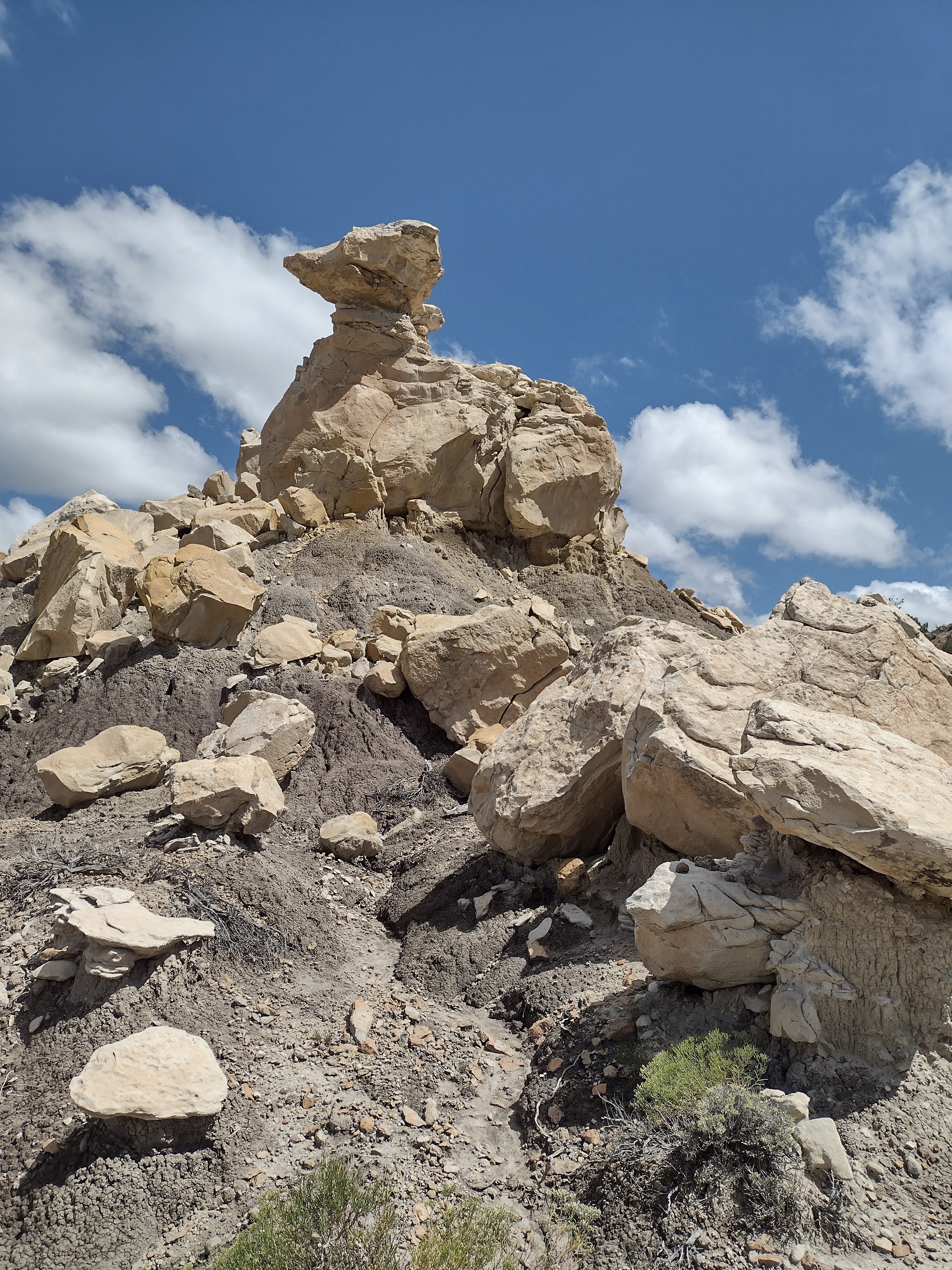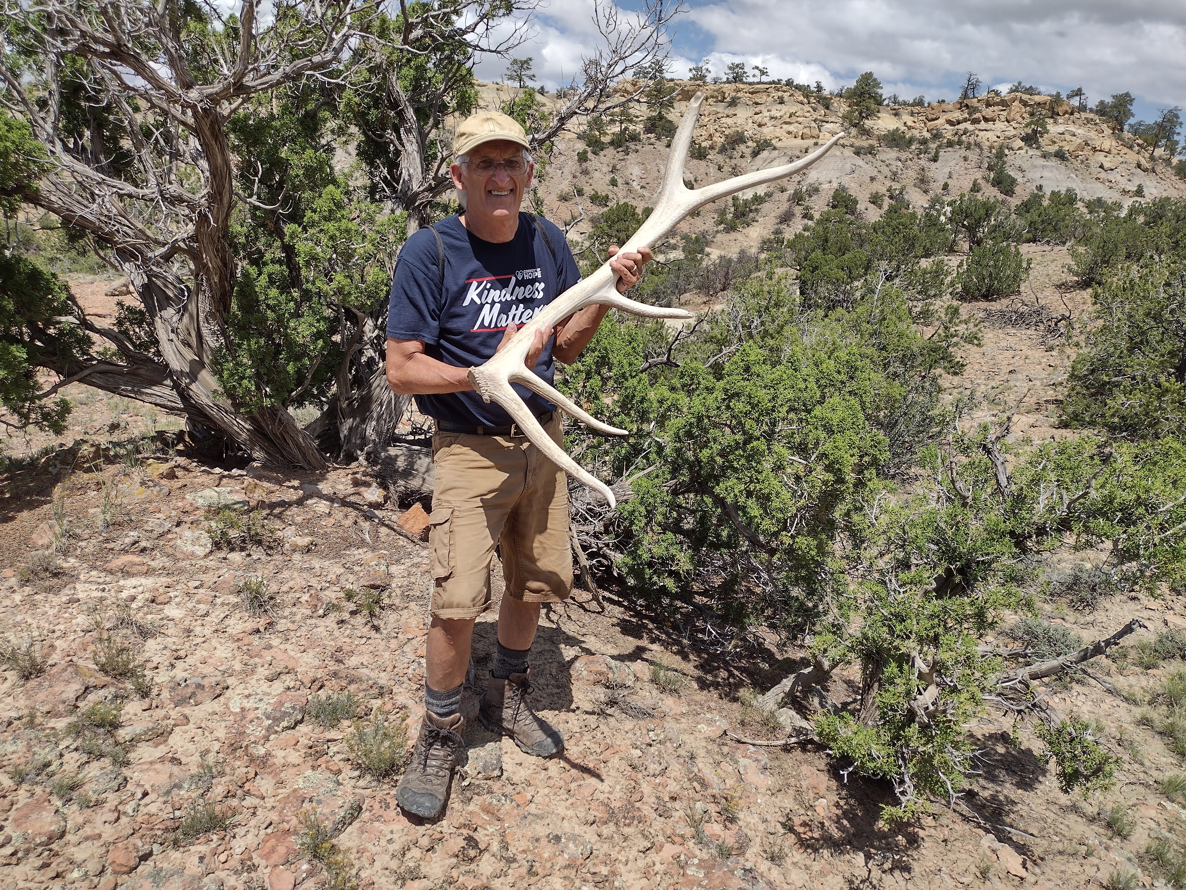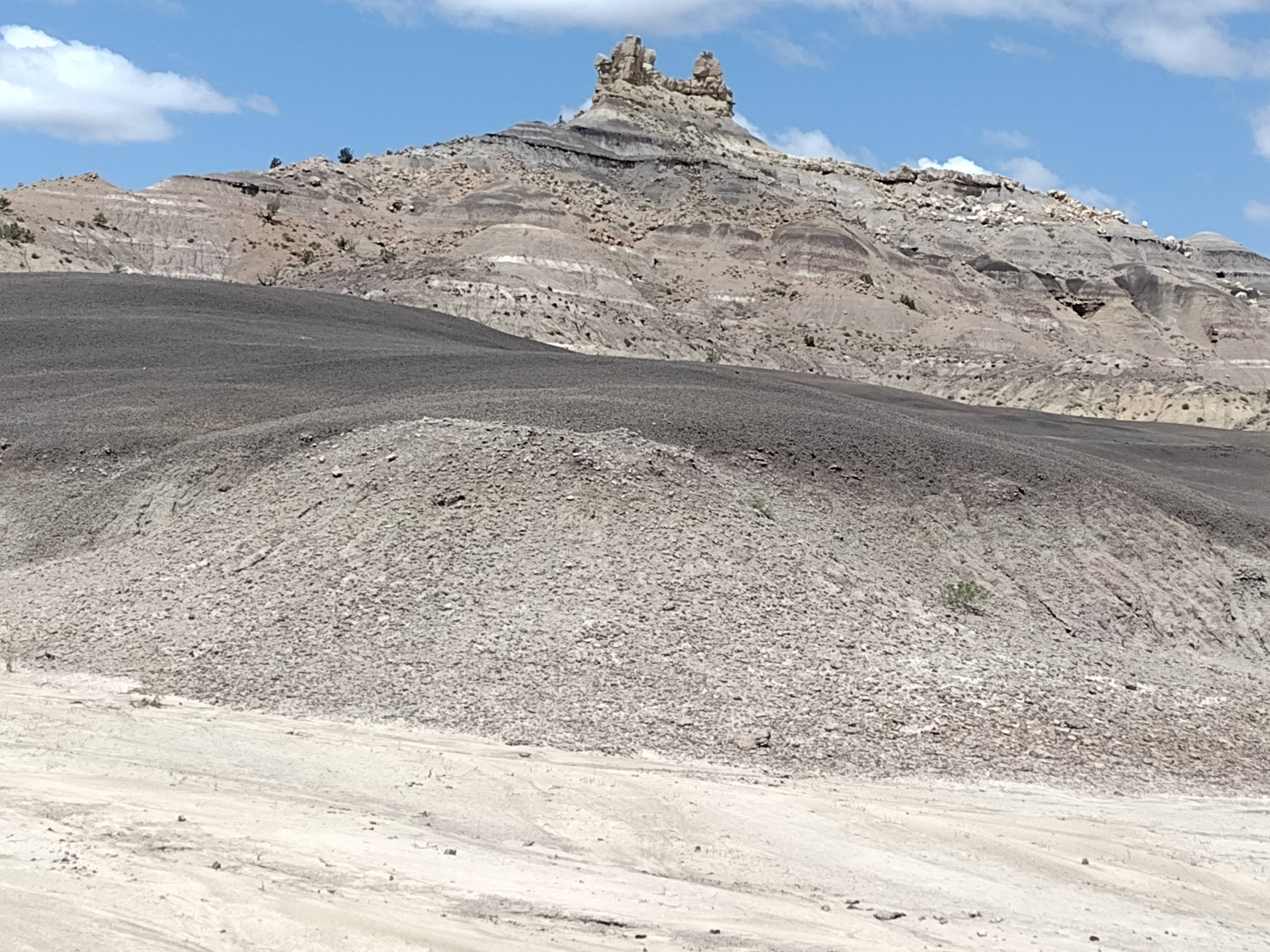On a sunny August Saturday it’s a safe bet that hiking trails in the mountains around Albuquerque and Santa Fe will be popular destinations. But by driving a little over an hour to Cuba and then heading down one of the many dirt roads outside of town it’s possible to spend a pleasurable day hiking on BLM land without seeing another human being. Maybe one or two cows occasionally appear along the road, but, otherwise it’s just us and the vast sky stretching over miles of eroded rock formations interspersed amongst sagebrush, pinon, juniper and even some ponderosa pine.