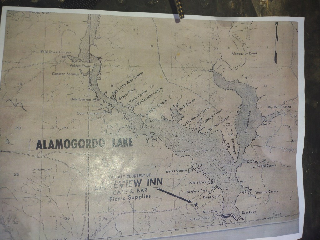We had gone into the small visitor center at Sumner Lake State Park to see if they had any maps of hiking trails. I browsed the one display that explained the history of the area and then went to the counter to check out the maps and brochures. I glanced down and was surprised to see a map of Alamogordo Lake. I lived in Alamogordo for 15 years but had never heard of Alamogordo Lake.