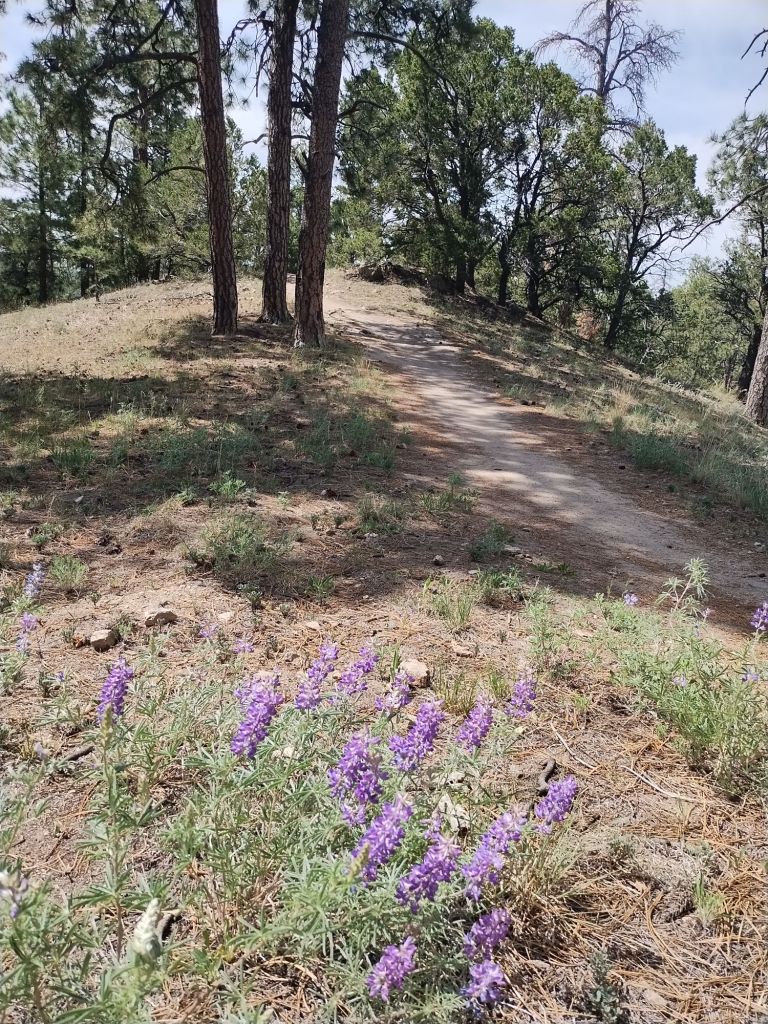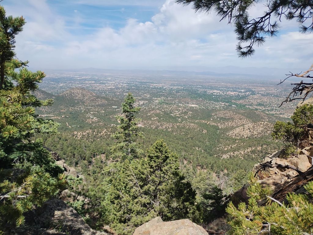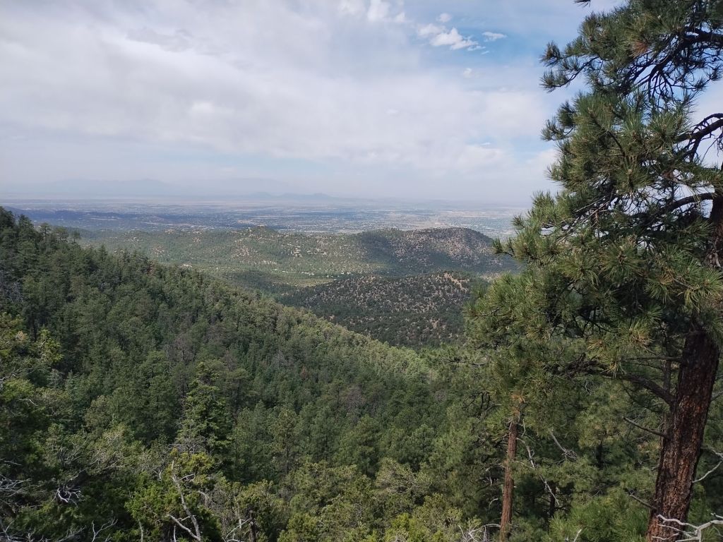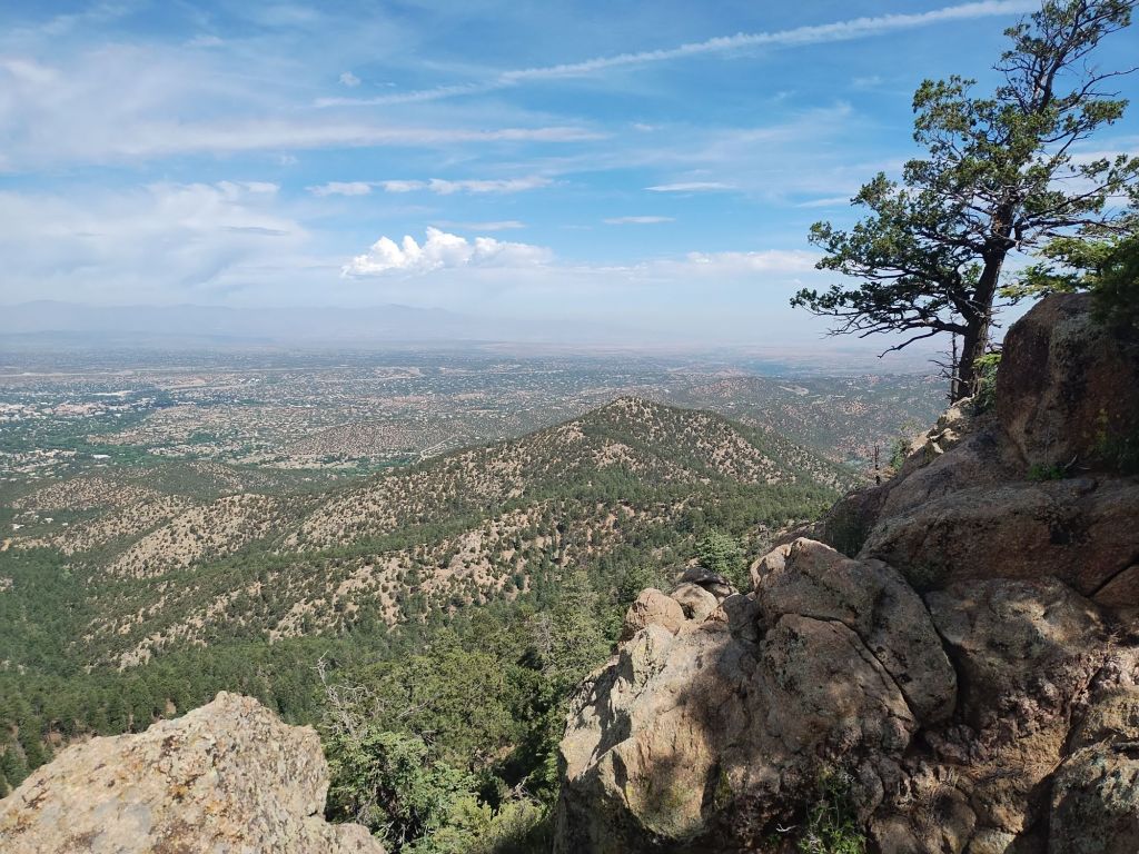 Atalaya Mountain is a 9100 foot peak east of Santa Fe with a nice trail that starts at 7300 feet elevation and reaches the top in 3 miles.  The trailhead is within the city, which makes it an easy 1-hour drive from Albuquerque on Interstate 25.  It can get busy, since it’s used by both hikers and mountain bikers, but considering the hot weather and that it wasn’t yet the weekend, there were very few people on the trail.  Another fun day under the Arco de Calor.
