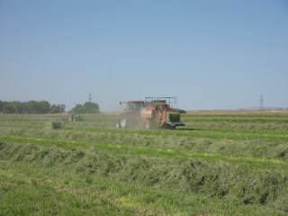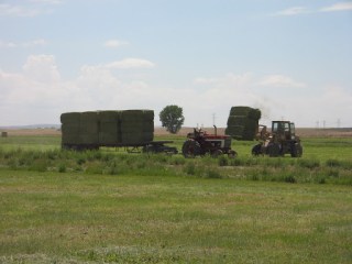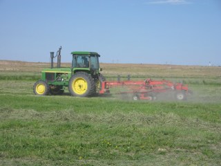 The hay crop was small because of the drought and some of what was cut will be ruined after everything has dried out and the haying resumes. But most of what was cut down this week was brought in and stacked before the rain and Sande was thankful for the hay that she did get. Hopefully, second and third cuttings later this summer will yield more.