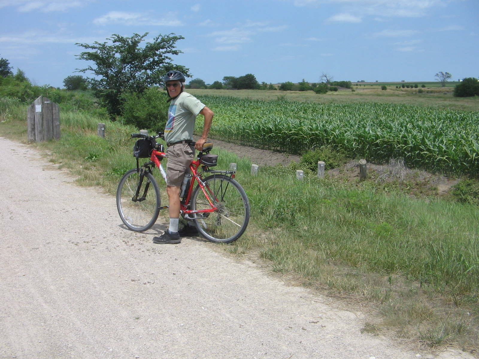 Our four days of bike riding last week on the Katy trail in Missouri were good preparation for the heat and headwinds here in Iowa. Being on a rails-to-trails bike path meant that we didn’t get to experience any hill climbs but, in a way, that can make the riding more difficult. It’s always a struggle when you have to stretch your legs and lungs to pedal up a steep hill, but then there’s the reward of zipping downhill. On the flat stretches of the Katy trail it can get quite tiring to just keep pushing and pushing at the same steady pace as you slowly pass the miles of the same cornfields, wheat fields and river bluffs that were visible the hours before and the days before.