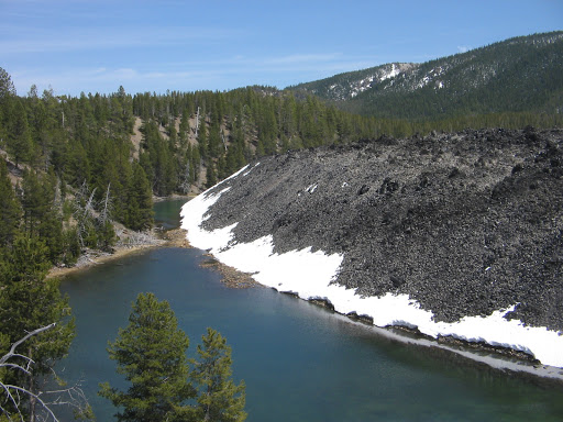Obsidian Flow with traces of snow at Newberry Volcanic National Monument