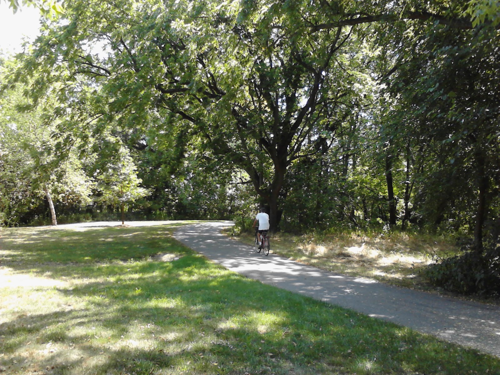 We managed to find a bike trail to explore each of the days last week that we were in Des Moines. I was surprised at how many of the trails allowed us to ride in places with lots of shade trees.