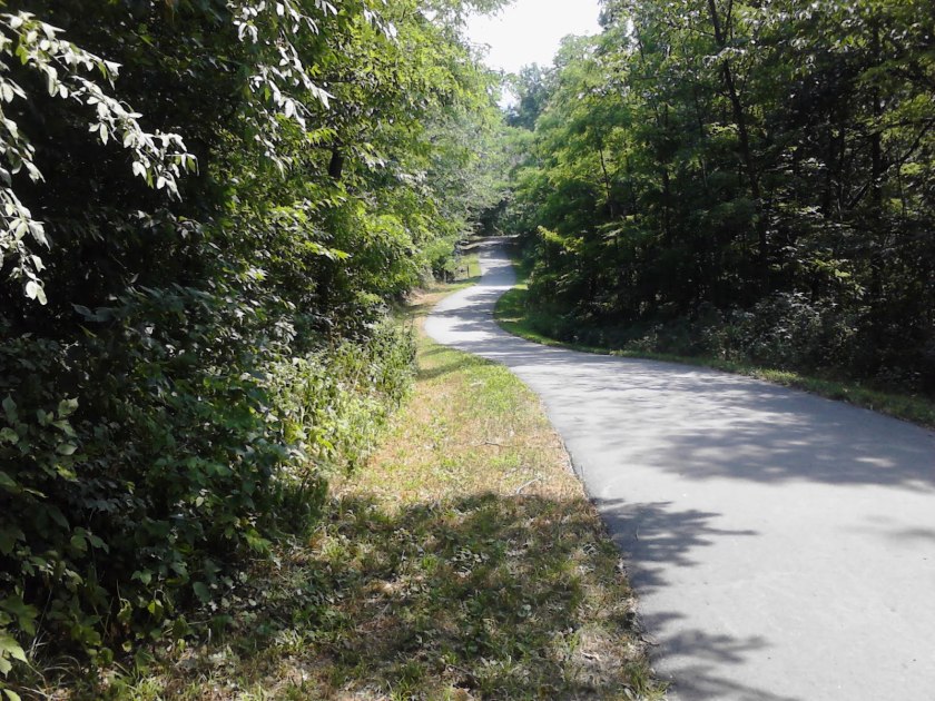 As it turned out, we had picked the best section of the trail. There was a lot of shaded areas in that section, nice views of the lake, and many ups and downs and winding twists to keep things interesting. We learned from another biker at the end of the day, that the section we didn’t do from the Visitors Center to Des Moines, was all flat river bottomland through the suburbs and city.