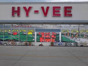 Just a note about the photo above. HyVee grocery stores are an Iowa institution and in every town they are so supportive of RAGBRAI. Thank you, HyVee and, yes, even after a tough day like today I