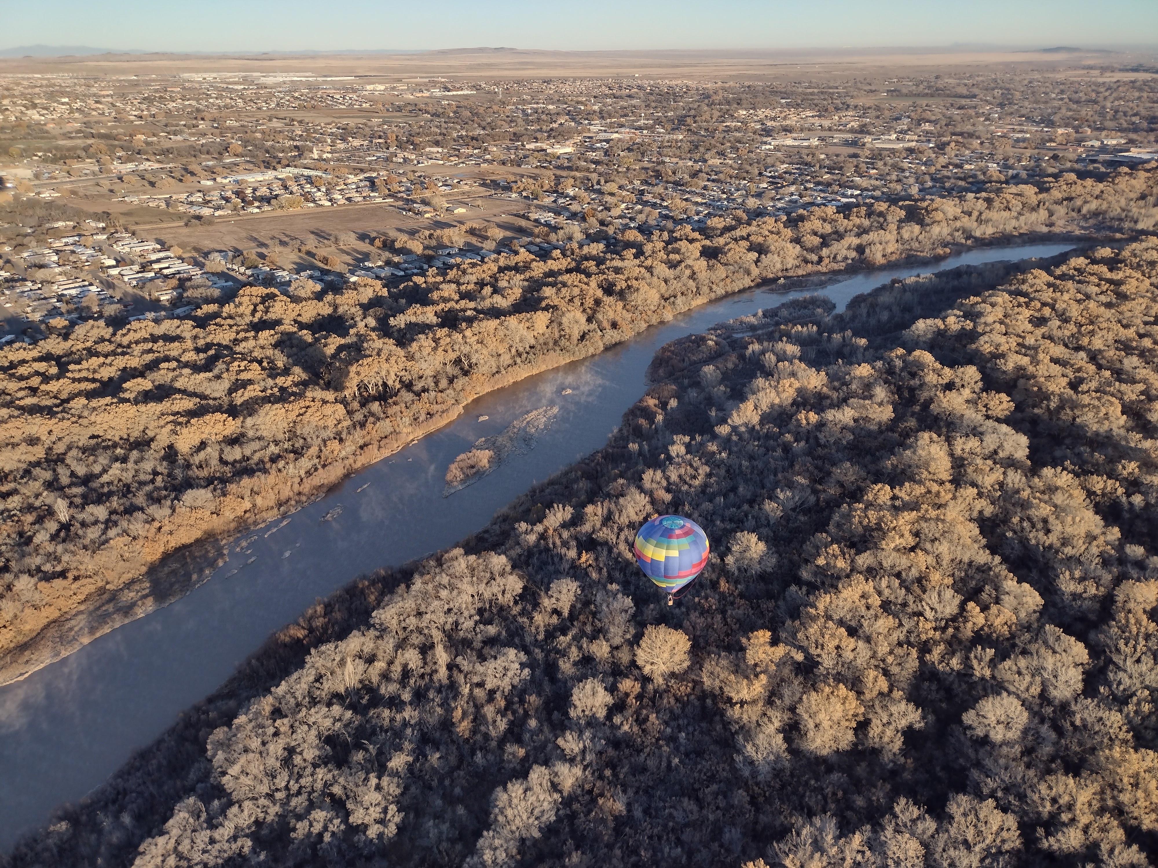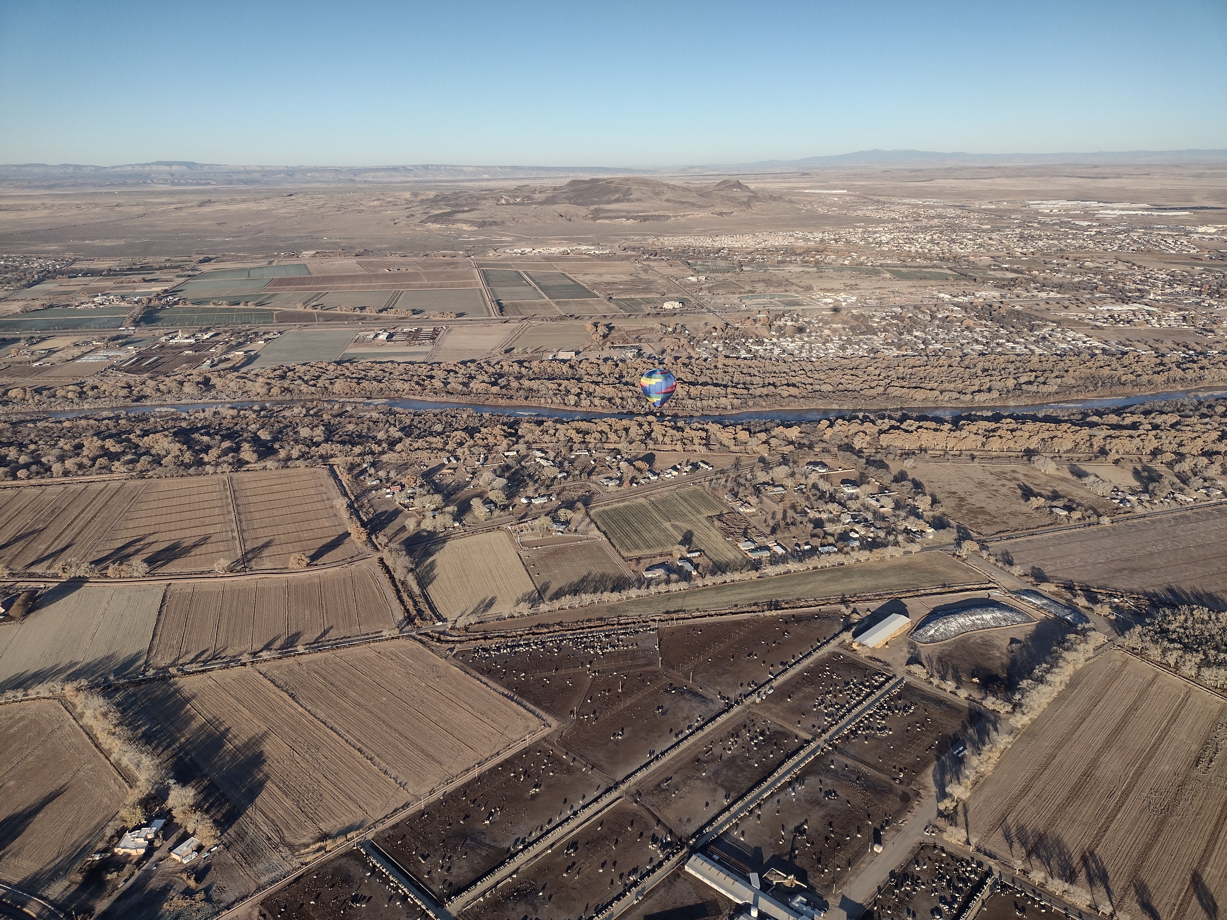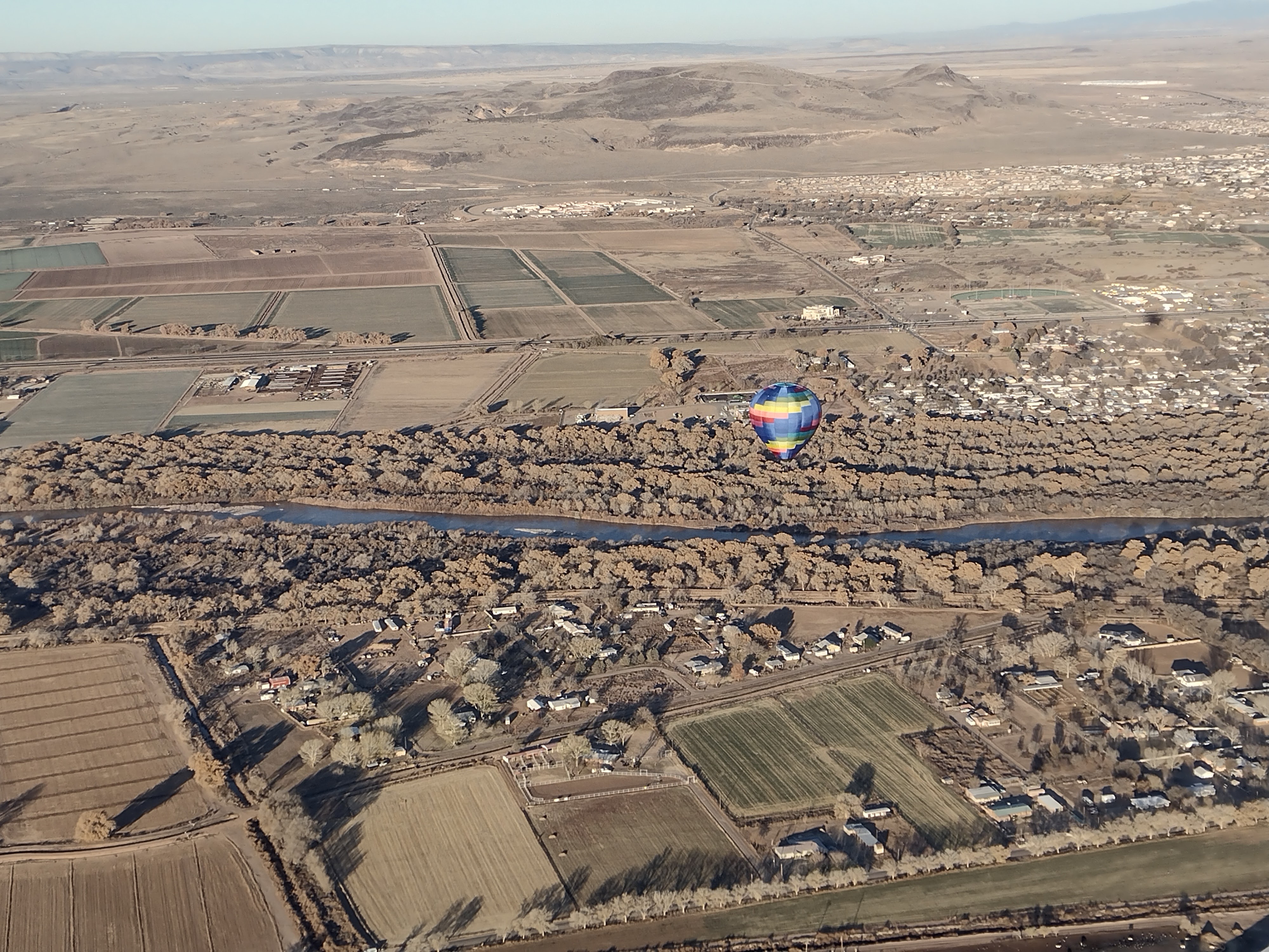 The night before our scheduled flight Fly Albuquerque called with the news that an approaching storm system would make it too windy to launch and we would have to reschedule. We picked another day a week later but then the same thing happened. The third time is a charm, though, and yesterday we finally got to go up.