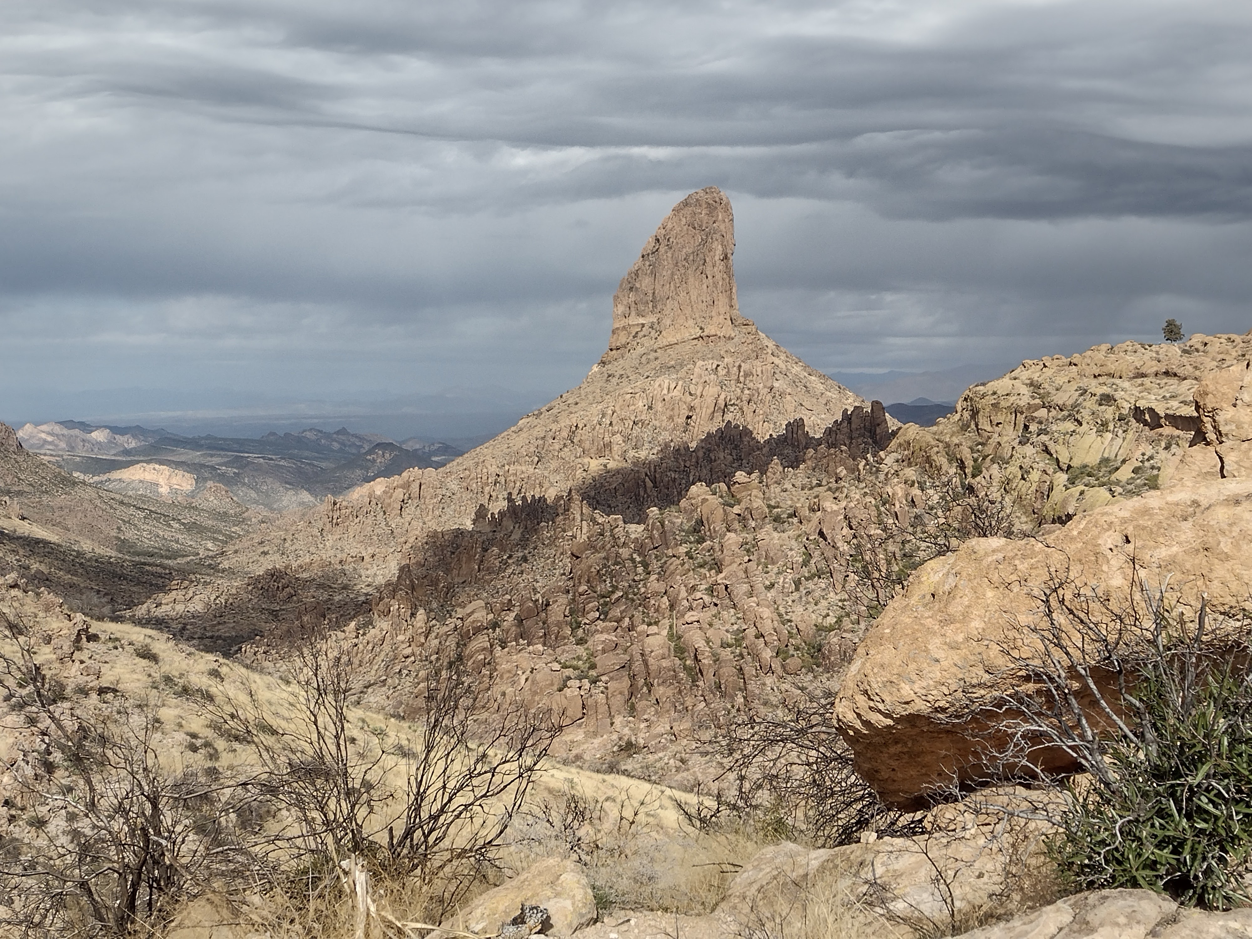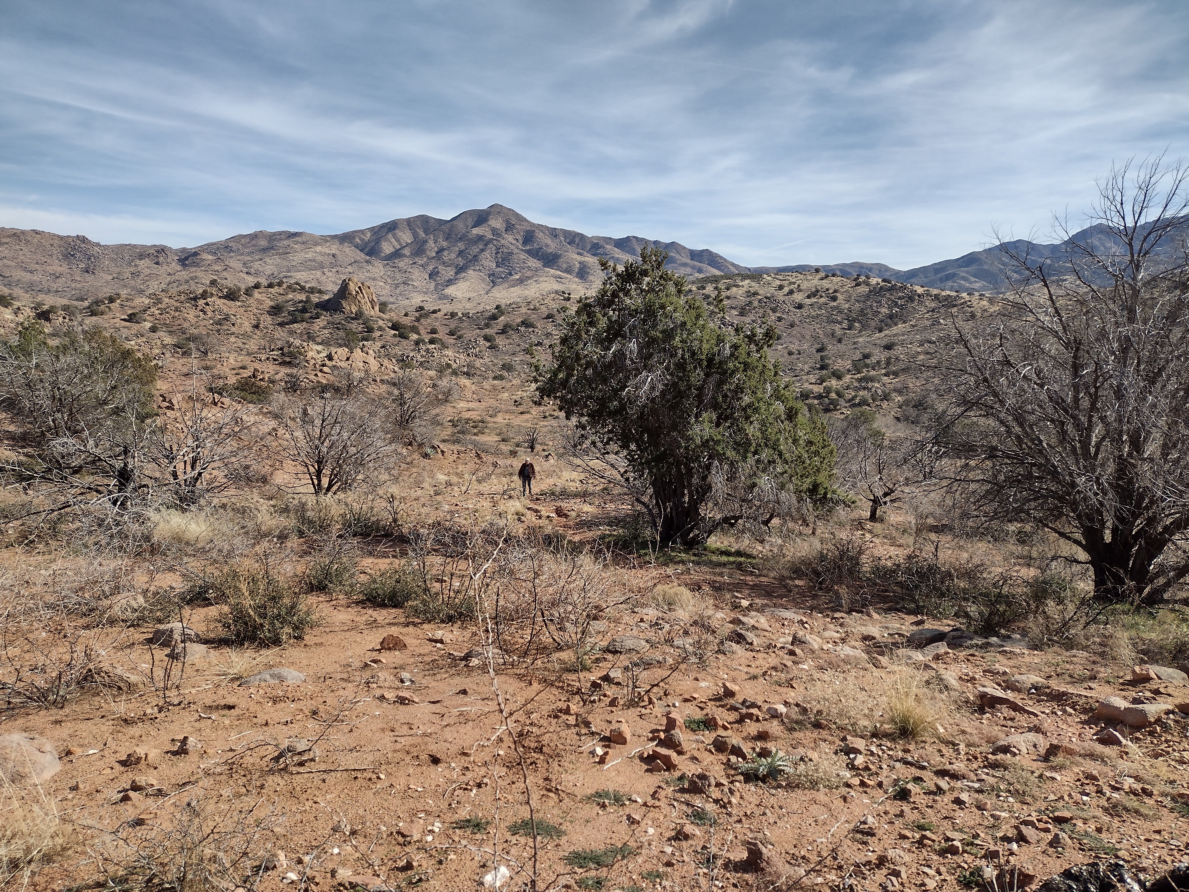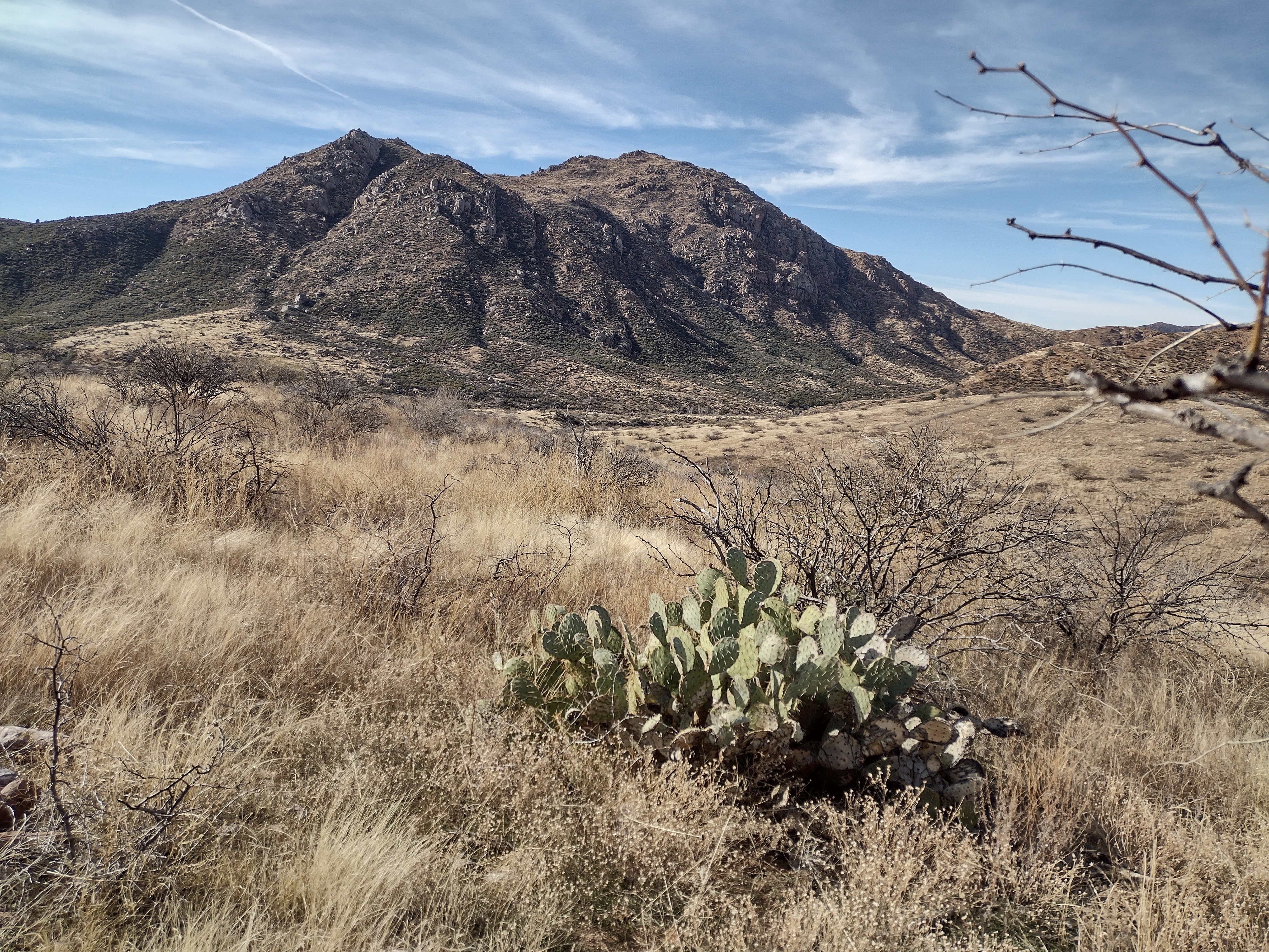 The loop trail in the Whetstone Mountains that we hiked on the first day was one that Lee and I had done on a trip here a couple of years ago. This time we were joined by Mary, who had driven down from Tucson. Her first words were “it’s already pouring rain in Tucson.” The three of us had been closely following the weather forecast and from the gathering clouds it was obvious that moisture was on the way. But it wasn’t a major storm front so we decided to head up the trail and turn around if it got too bad.