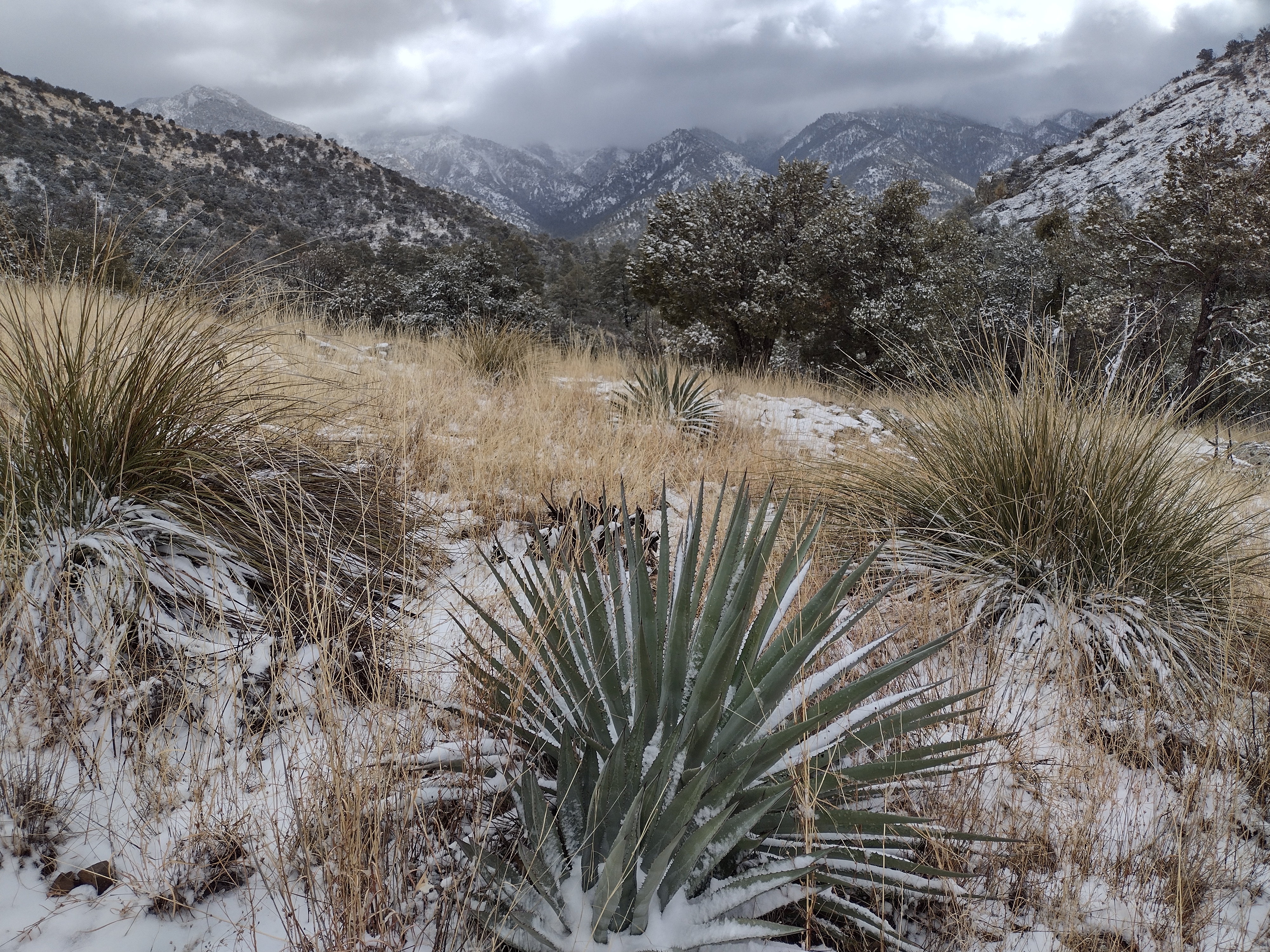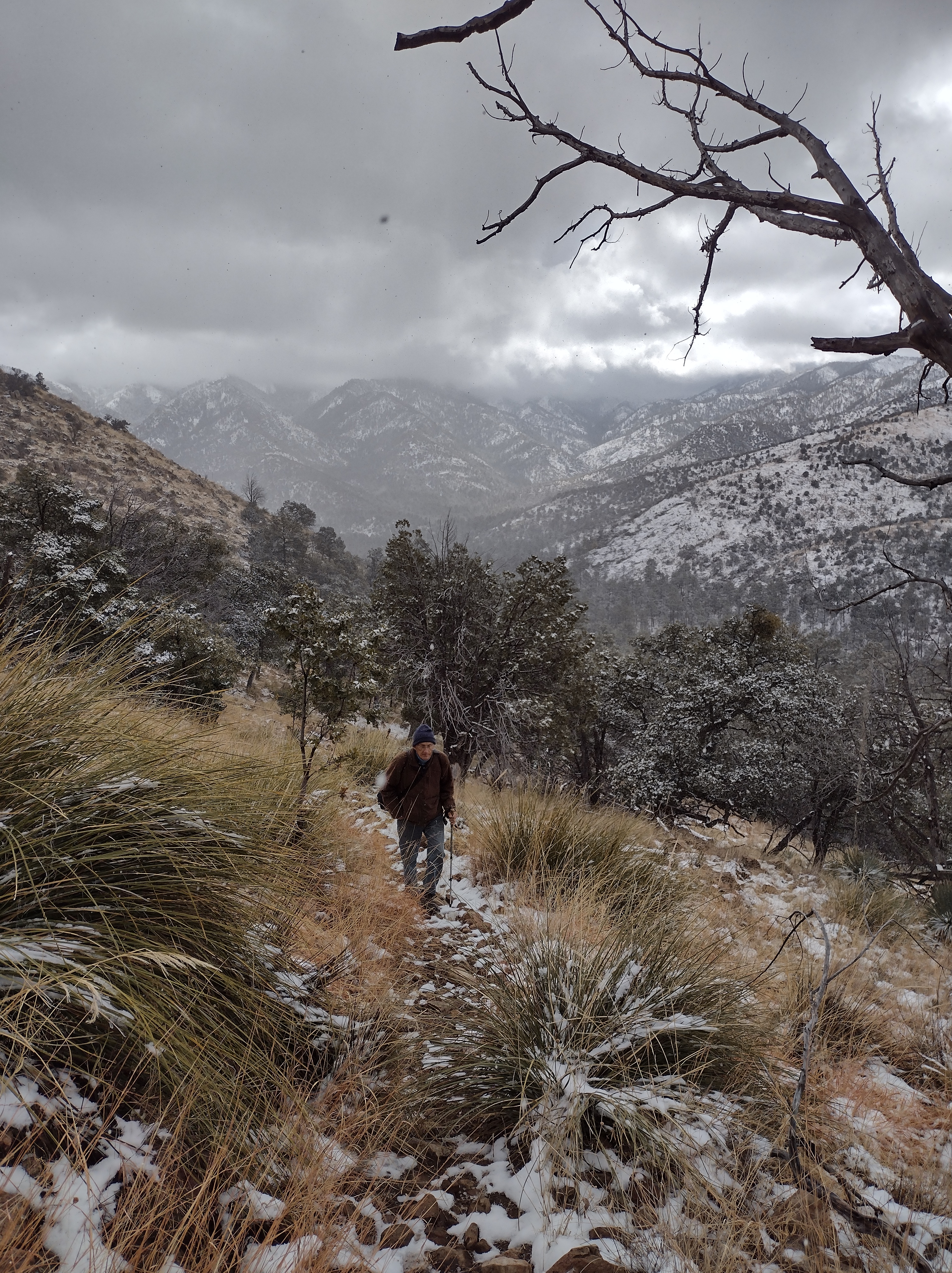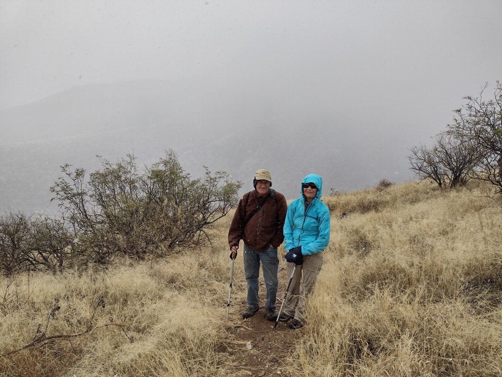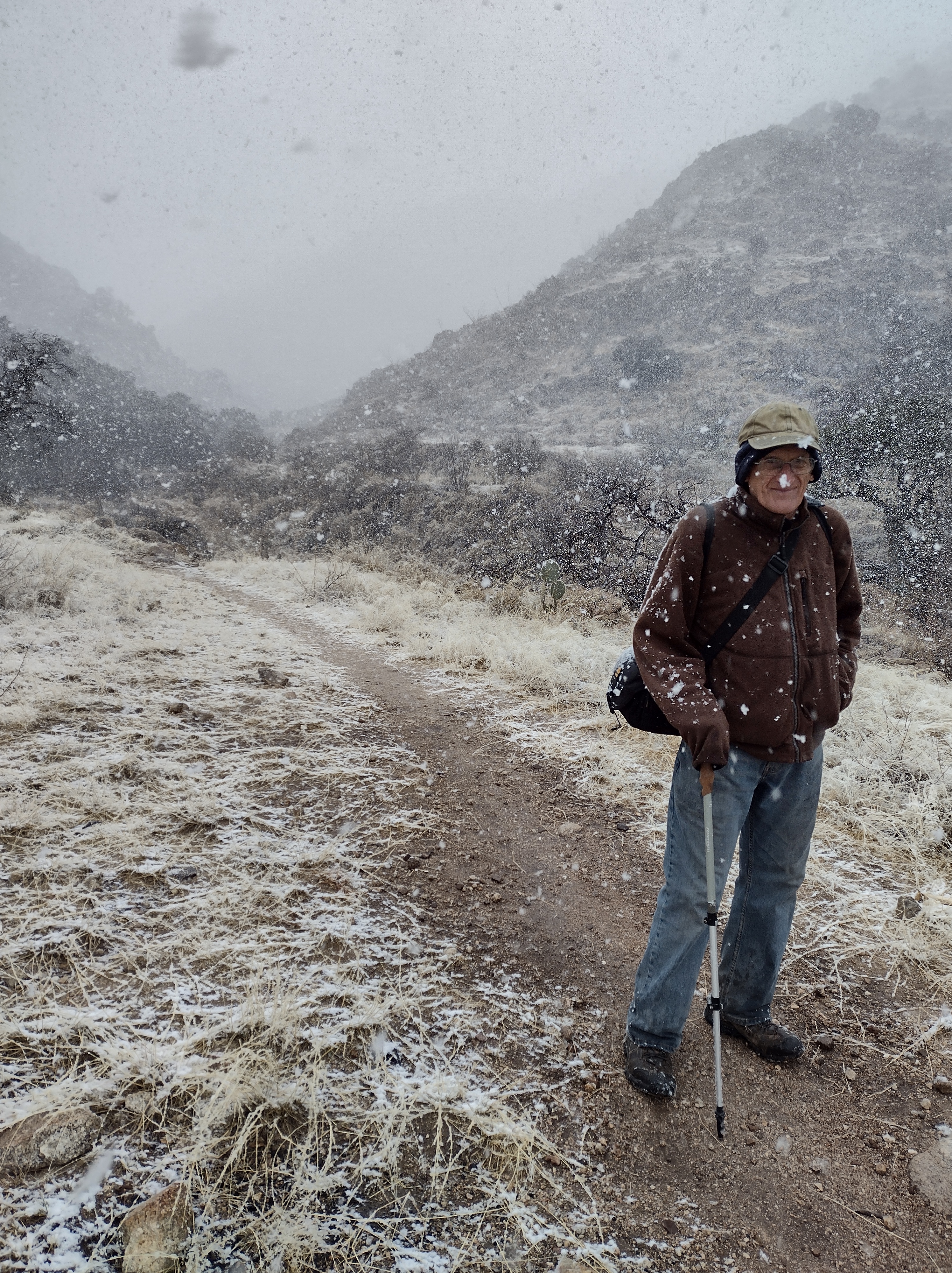 Our mid-winter mini vacation to enjoy three days of hiking in southern Arizona turned out to be three days of hiking in snow. But, of course, compared to places like Colorado or the Northeast the snow we encountered was only a minor annoyance. And even that could have been avoided if I had thought to bring along a pair of dry socks for each day’s hike. My hiking boots aren’t waterproof and usually that isn’t a problem. But especially on the first day, by the time we finished the hike, my feet were thoroughly soaked and ice cold. Dry socks never felt so good when we finally got back to our motel.
