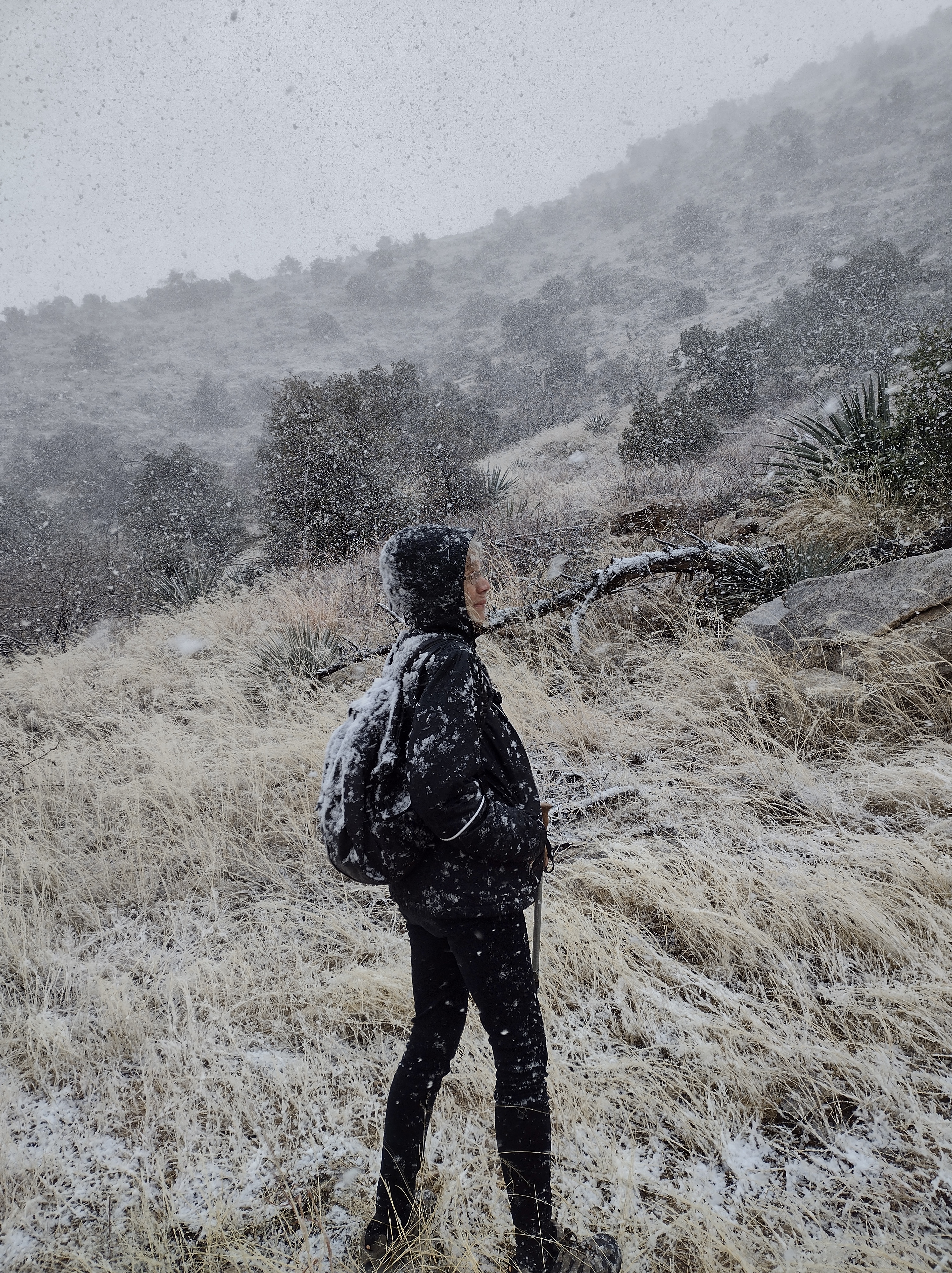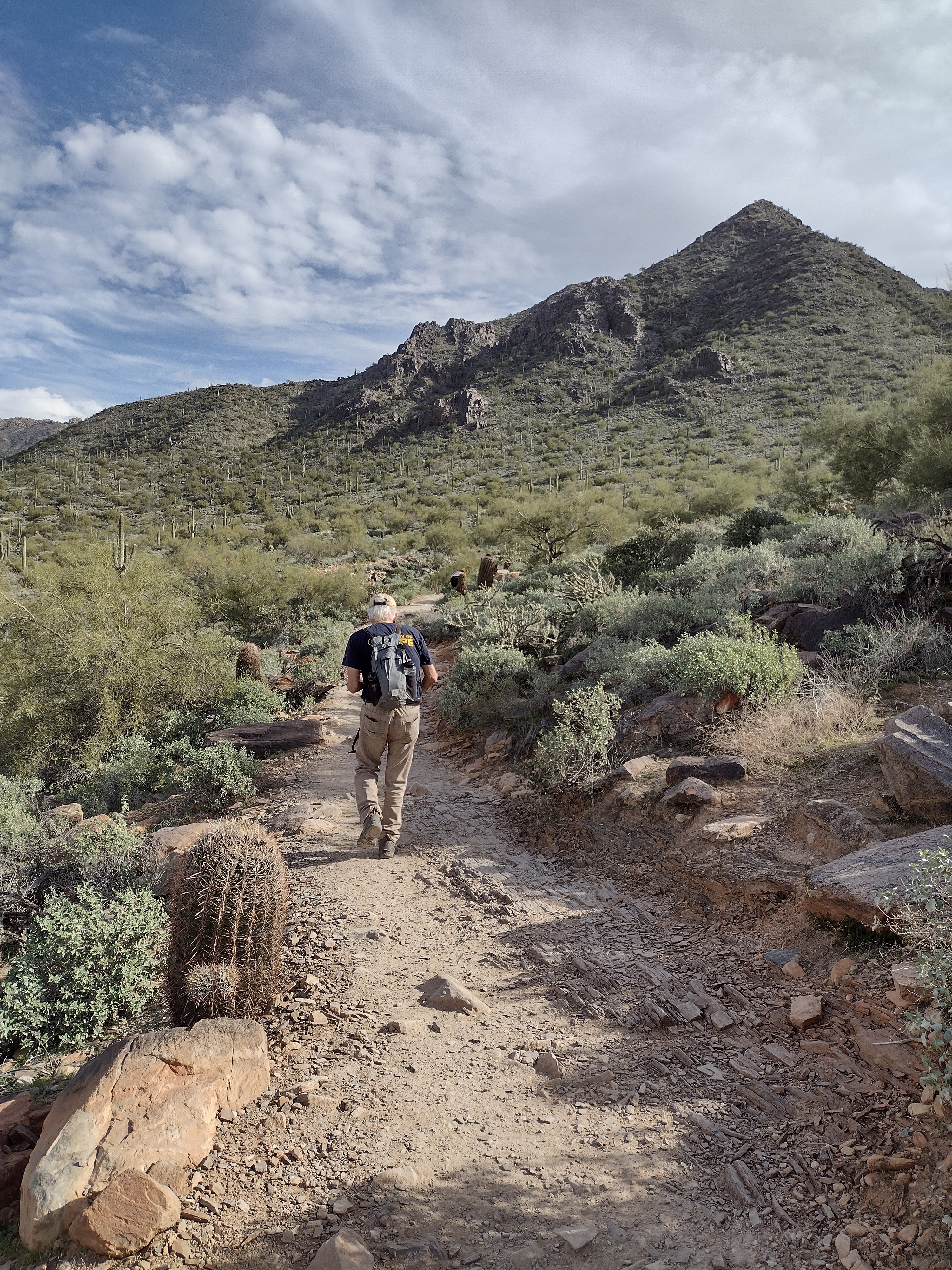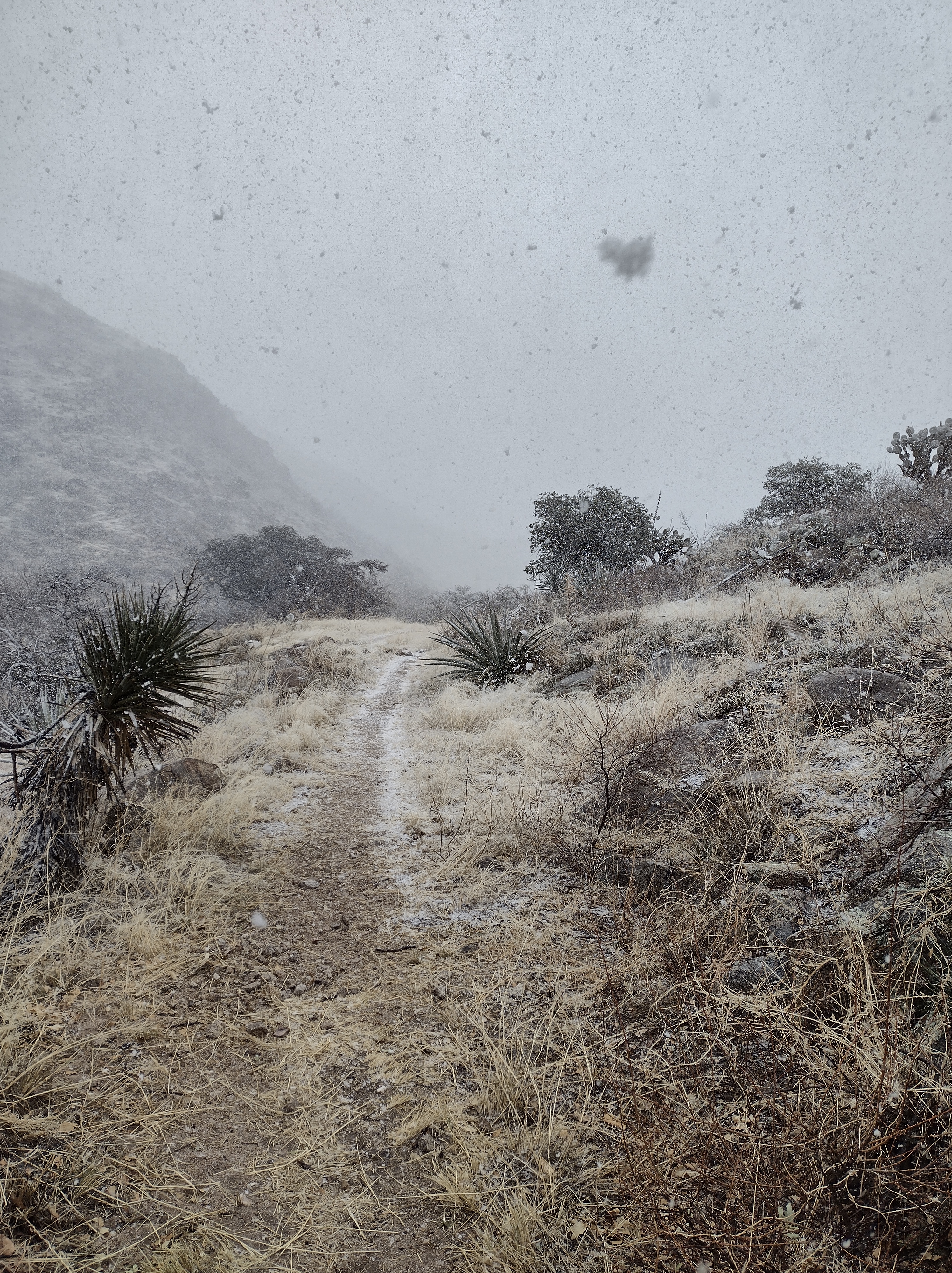 Our mid-winter mini vacation to enjoy three days of hiking in southern Arizona turned out to be three days of hiking in snow. But, of course, compared to places like Colorado or the Northeast the snow we encountered was only a minor annoyance. And even that could have been avoided if I had thought to bring along a pair of dry socks for each day’s hike. My hiking boots aren’t waterproof and usually that isn’t a problem. But especially on the first day, by the time we finished the hike, my feet were thoroughly soaked and ice cold. Dry socks never felt so good when we finally got back to our motel.