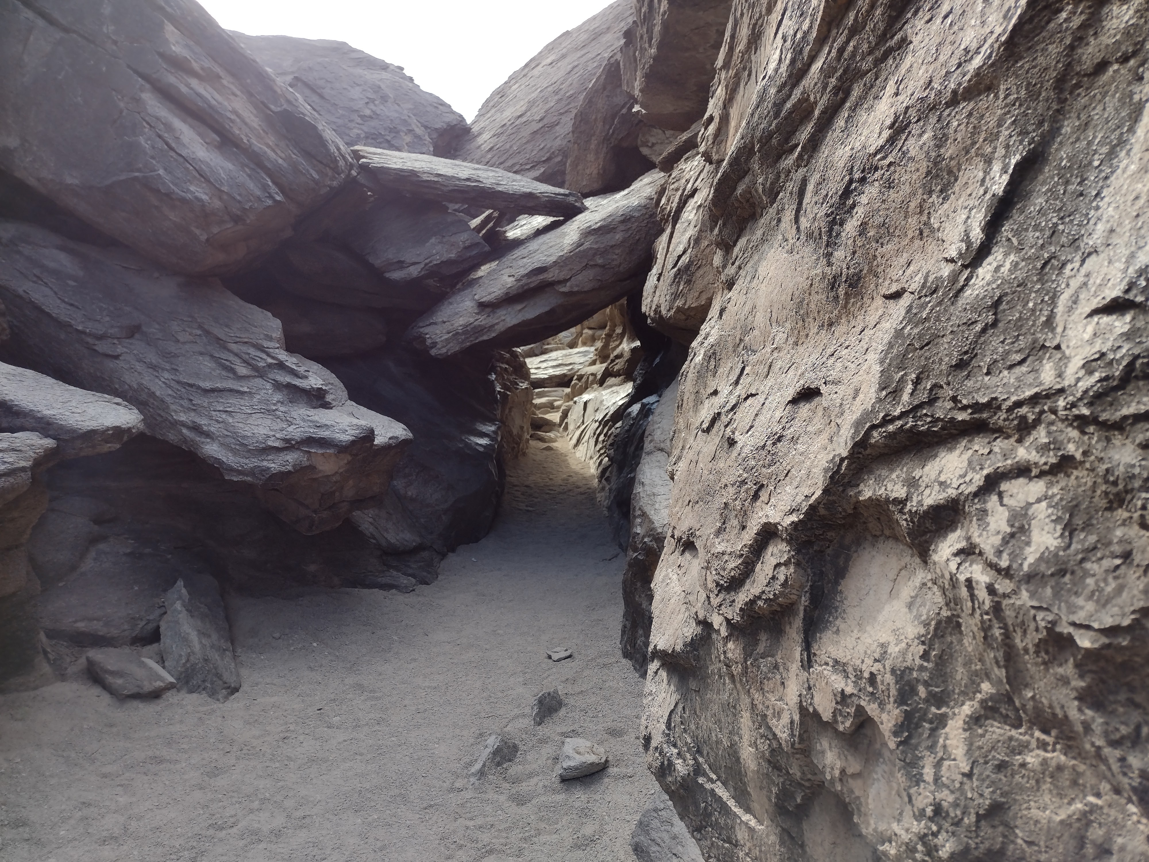From the weather forecast it was rain that we had expected, but, in the mountains, conditions are quite different from the valleys below. The precipitation started off as sleety pellets which progressed to wet, sloppy flakes as we made our way through the pass and down into the canyon on the other side. We probably would have been more thoroughly soaked if it had been raining. Making sure to watch our steps on the slippery rocks, we enjoyed the novelty of the falling snow which ended as soon as we got to lower elevation.
