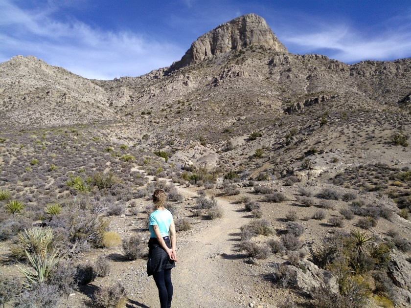 We had been to Red Rock Canyon on other visits and looked forward to revisiting the scenic red rocks. We wanted to do one of the hikes that we hadn’t done before and I threw my money on the square for Turtlehead Peak. Two and a half miles up to the summit and then back down sounded doable in the time that we had. We needed to get back to town with enough time to get dressed and ready for the wedding.