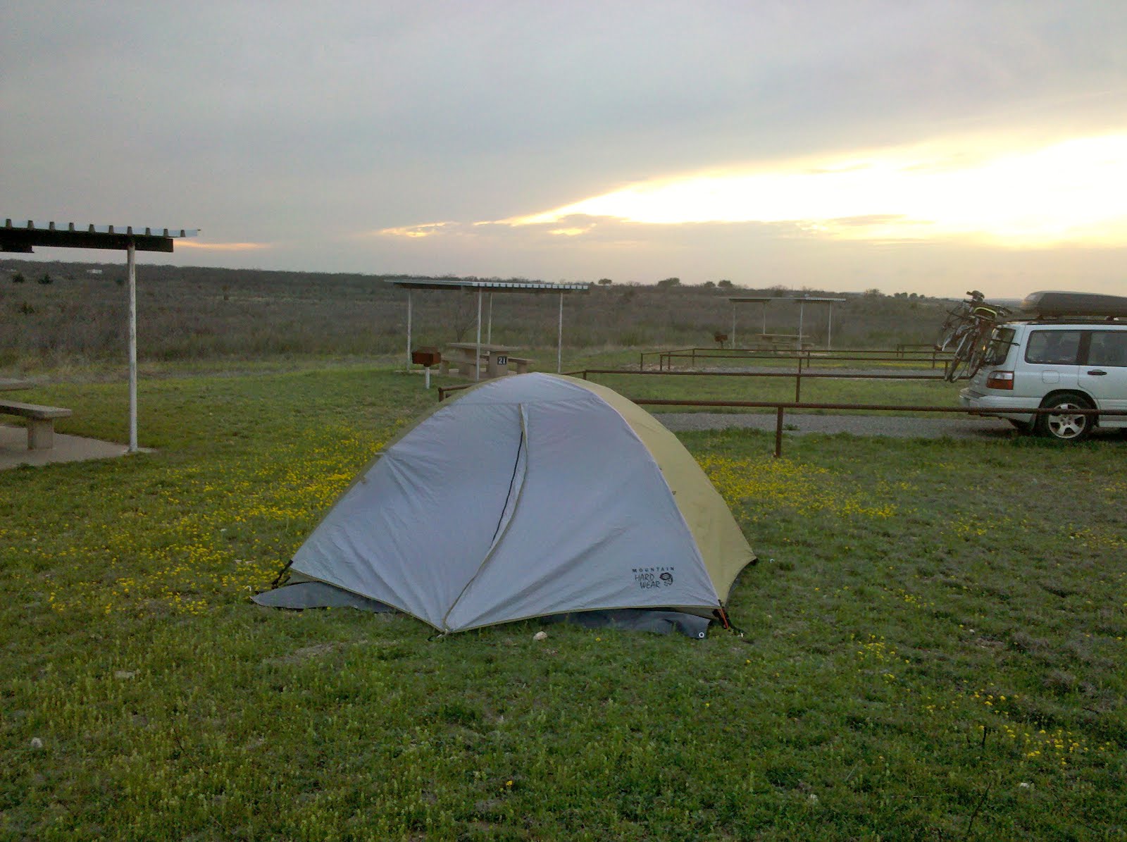 The other unforeseen circumstance in our San Angelo campout was the open barrenness of the tent camping area combined with last night’s strong spring winds.