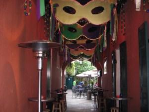 Lunch stop in courtyard of a small eatery on Bourbon Street