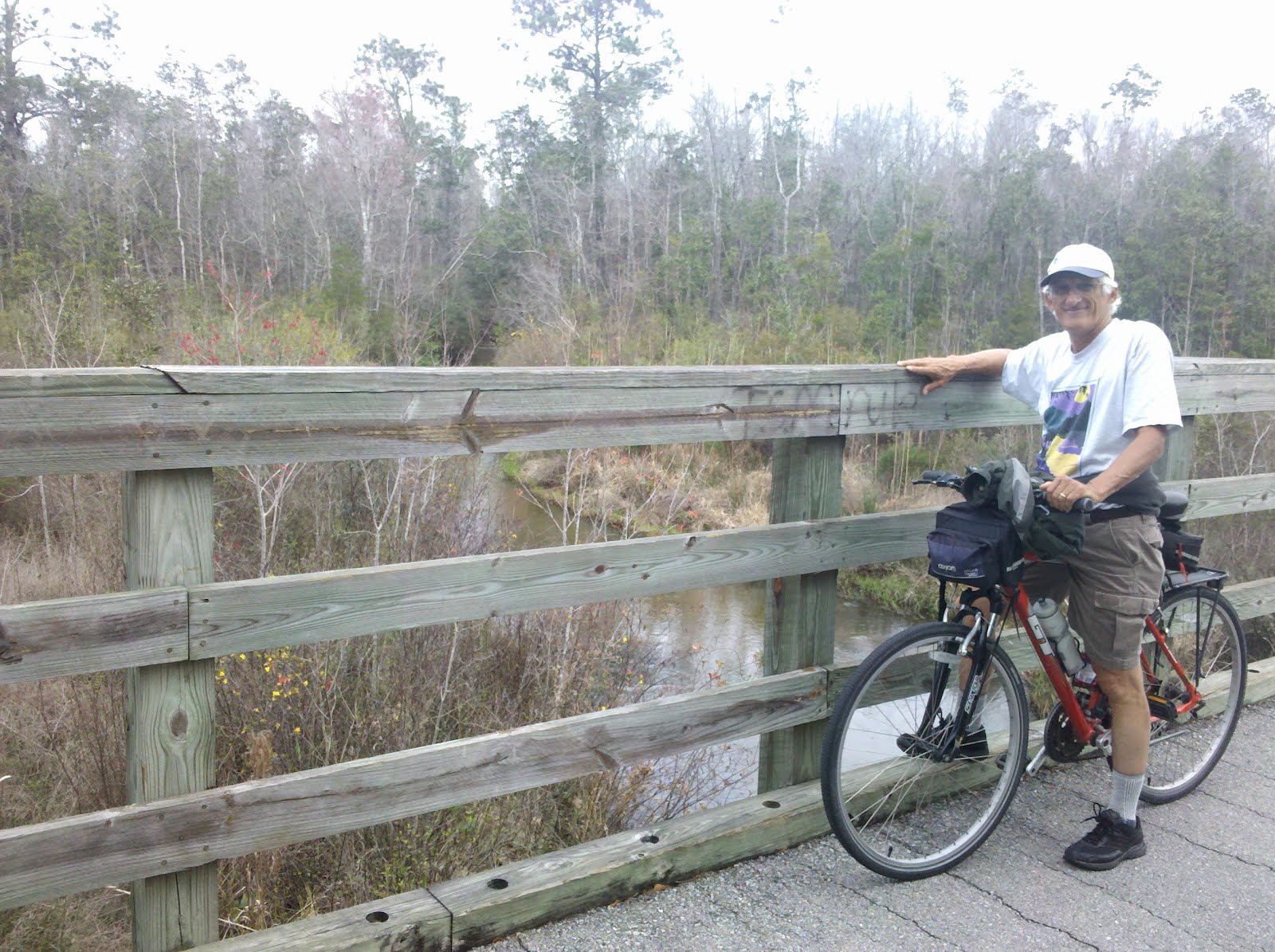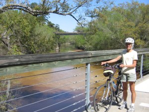 At the Bayou Lacombe Trailhead on the Tammany Trace. This was an interesting stop because the bridge that the bike path crossed was actually a drawbridge–can you believe it, constructing a drawbridge just for a bike path?