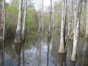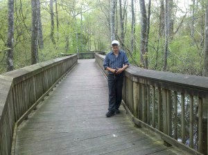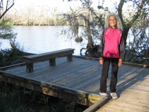 Another two days of camping was spent at Tickfaw State Park. Whereas Fairview Riverside was close to an urban area, Tickfaw was way out in the swamps. We were a bit apprehensive about going there because of posted warnings that some of the tent sites were under water. It certainly was a wet area and we had to carefully look at all the sites to find one that wasn’t too muddy or too far from the bathrooms. The first night only one other tent site had campers and the second night we were the only ones in the tent camping area. But it was quiet and peaceful and as long as I didn’t let my mind wander to thoughts of something from the swamp crawling up into the tent at night, it was fine.