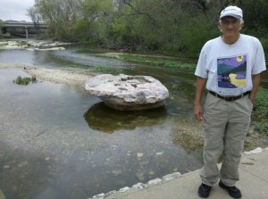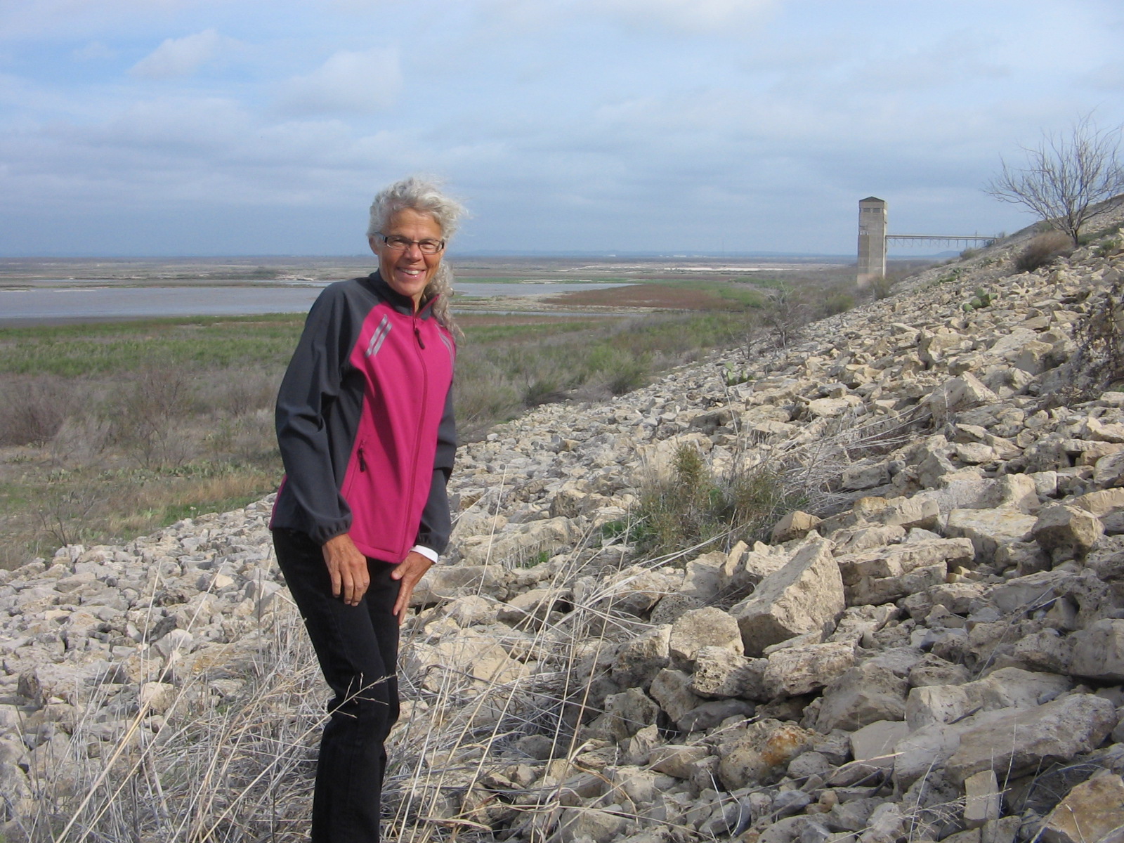 The springtime spectacular that we got to enjoy on our drive to San Angelo was a sharp contrast to our “sightseeing” in San Angelo. We had looked at a map and knew that there were a couple of lakes in the area, the Concho River that flowed through town, and a reservoir outside of town with a state park. We made plans to camp at the state park. What we hadn’t realized was that this part of Texas has not recovered from several years of severe drought conditions. The reservoir at the state park has shrunken to about 1% of it’s original size. The dam that created the reservoir is huge and hovers over the whole state park but there is no water for the dam to control. Ironically, it had been built after a 1936 flood that washed away homes and businesses on both sides of the river. It was completed in 1952 at the latter part of a seven-year drought. Scoffers joked about building a big lake in a place where it never rained. The first and last time that the lake filled was in 1957, after a tropical depression stuck over Texas, caused statewide flooding. Sadly, its current state of dryness is not the first time that it has dried out.