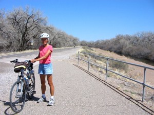 We learned a lesson from our Tramway Bike Path experience and used the prevailing winds to our advantage the next time we did a bike ride. That ride was on the Paseo del Bosque Bike Trail, which basically parallels the Tramway Bike Path, but is west of the city along the Rio Grande. We started on the north end of that trail so that by the time we turned around in the afternoon to head back north, the south winds were tailwinds, instead of headwinds.On the Paseo del Bosque Bike Trail.
