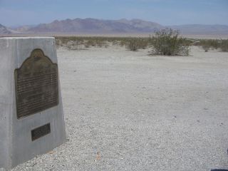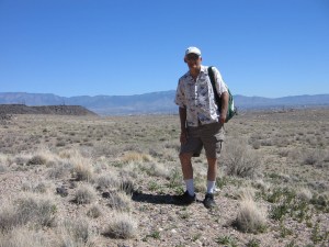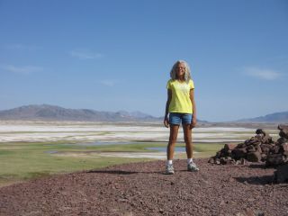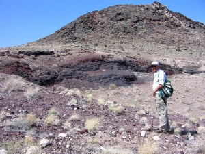 On top of the red mound in the dry lake at Tecopa Hot Springs.