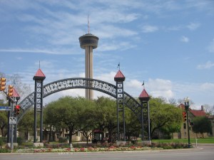 Hemisfair Park with Tower of Americas in background. The park was built when San Antonio hosted the World’s Fair in 1968.