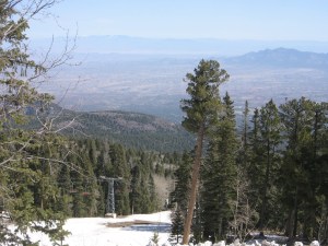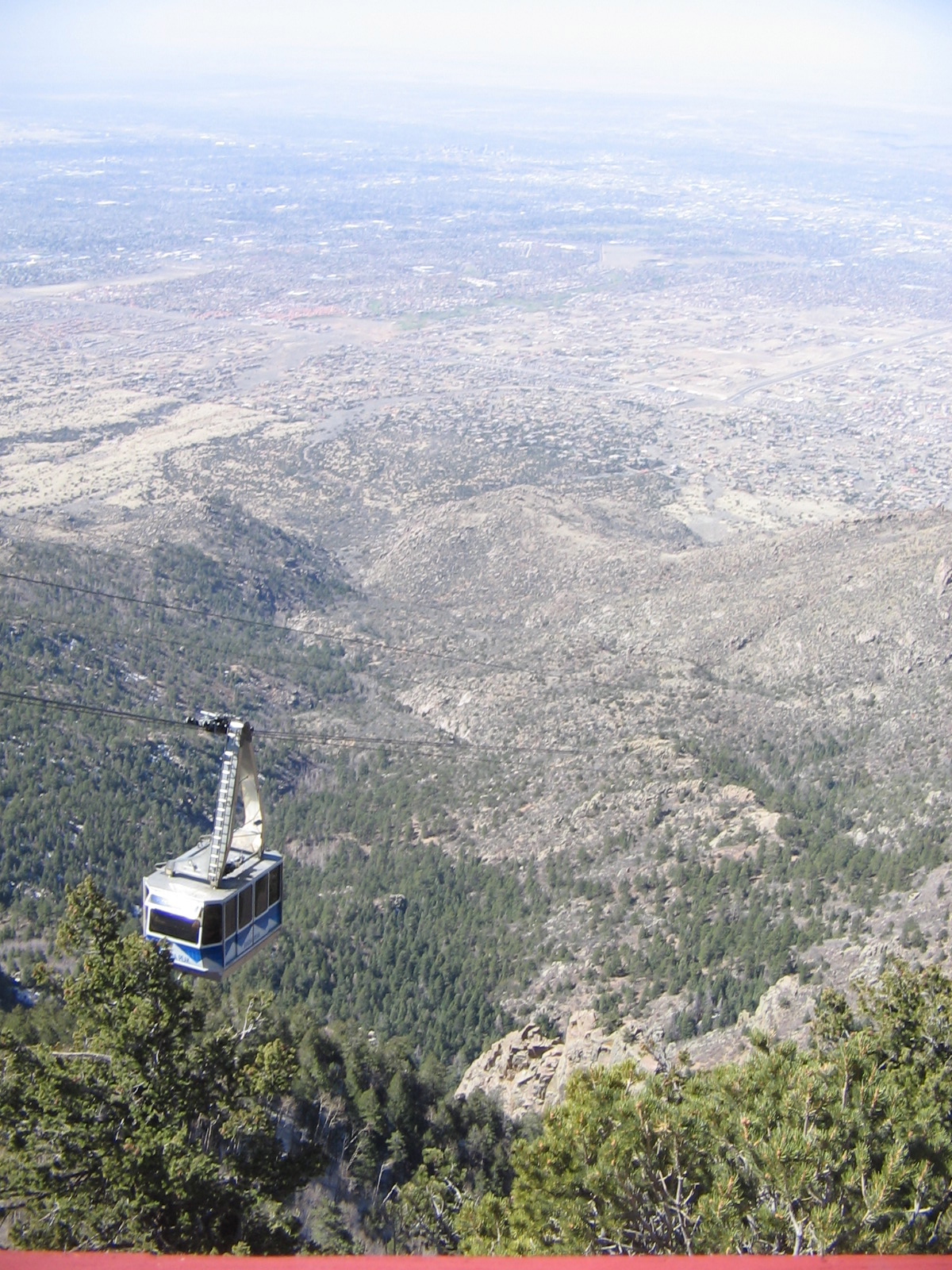 Today’s adventure was to ride the Sandia Peak Tramway from its start at the northeastern edge of the city to the crest of the Sandia Mountains. On a couple of our other excursions around the foothills we had been able to catch glimpses of the tramline and support towers and once or twice a tiny tram car creeping its way up the incline. So it was fun today to actually be there and find out what it was all about.
