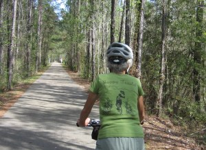 Before leaving Florida yesterday we did one last Florida bike ride on the Blackwater Heritage State Trail. North of Pensacola, this is Florida’s westernmost rail-trail. A paved 8-mile section passes through rural areas over several streams and then joins the 1.5-mile Military Heritage Trail that is on Whiting Field US Naval Air Station.